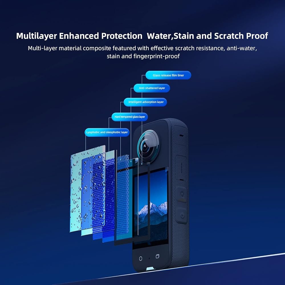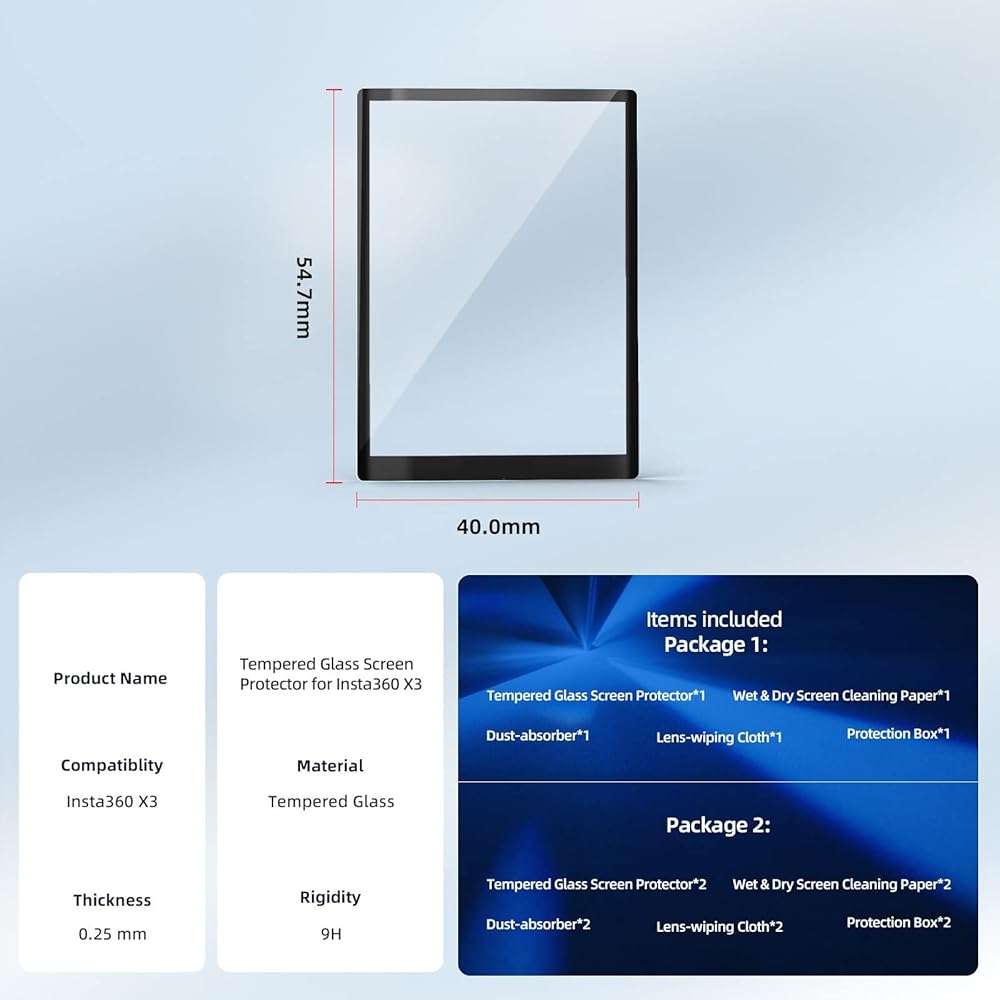 غشاء واقي شاشة من الزجاج المقوى لكاميرا انستا 360 X3 من قطعتين لملحقات كاميرا الحركة البانورامية انستا 360 ون X3