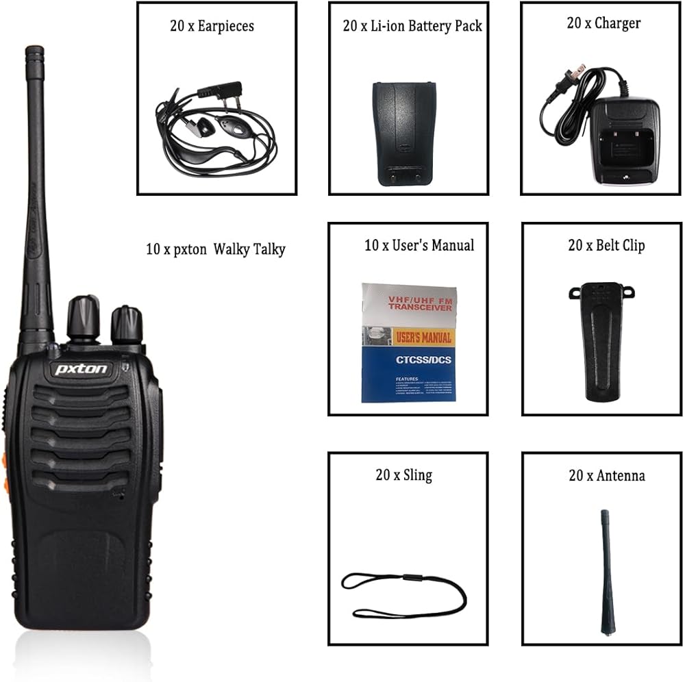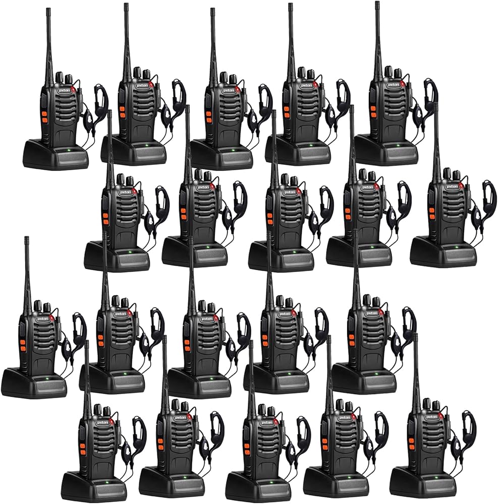 pxton 20 حزمة أجهزة اتصال لاسلكية طويلة المدى مع سماعة رأس، أجهزة اتصال لاسلكية للبالغين، أجهزة راديو محمولة ثنائية الاتجاه قابلة لإعادة الشحن تتضمن بطارية ليثيوم أيون وقاعدة شاحن