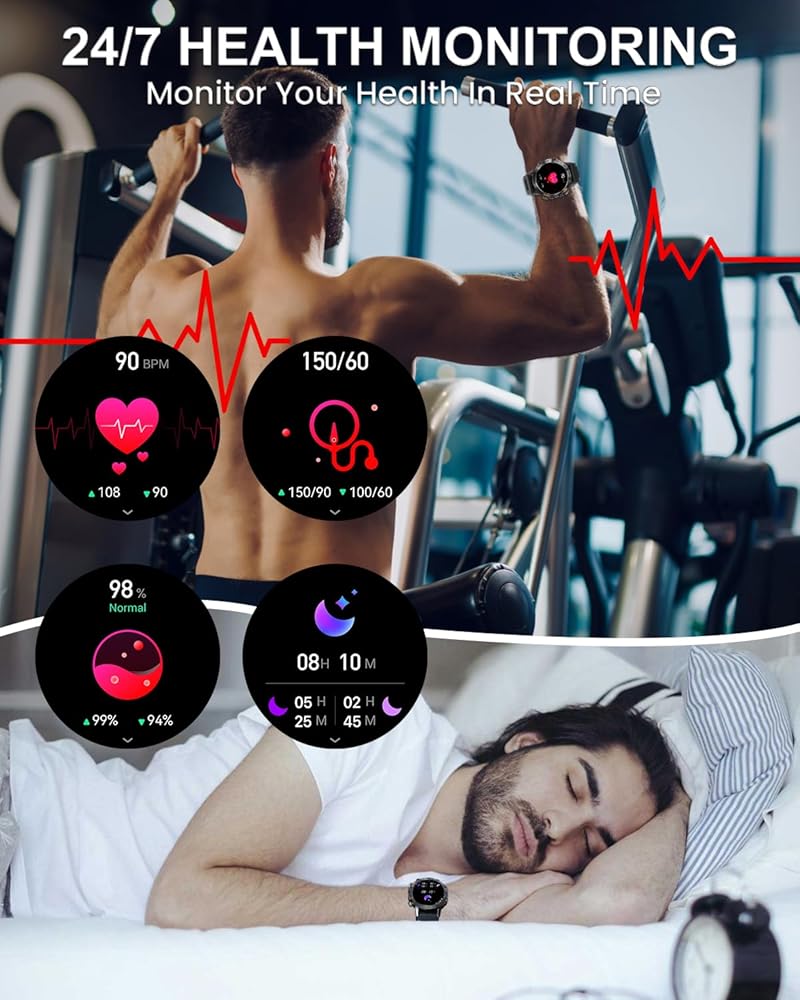 • ⌚【تتبع الصحة على مدار الساعة】الساعة الذكية المتقدمة المزودة بأجهزة استشعار بصرية مدمجة تراقب باستمرار معدل ضربات القلب ومستويات الأكسجين في الدم وضغط الدم على مدار الساعة. على الرغم من أنه ليس المقصود منه أن يكون تشخيصًا طبيًا، إلا أن هذه المراقبة الفسيولوجية الشاملة في الوقت الفعلي تسمح بتتبع الصحة بشكل فعال. يقوم جهاز تعقب النوم بمراقبة مراحل نومك وجودته ومدته بشكل مستمر على مدار الساعة طوال أيام الأسبوع، مما يساعدك على اتخاذ قرارات حكيمة لتطوير نمط حياة أكثر صحة.
