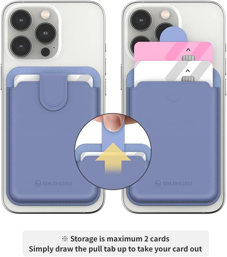 حامل بطاقة الهاتف الخلفي مع سهولة الوصول إلى البطاقة: مرفق محفظة الجزء الخلفي من حافظة الهاتف مع عروة سحب لتخزين آمن للبطاقات وسهولة الوصول إلى البطاقة عن طريق سحب العروة في الأعلى. يحمل حامل بطاقات جيب الهاتف هذا ما يصل إلى بطاقتين.