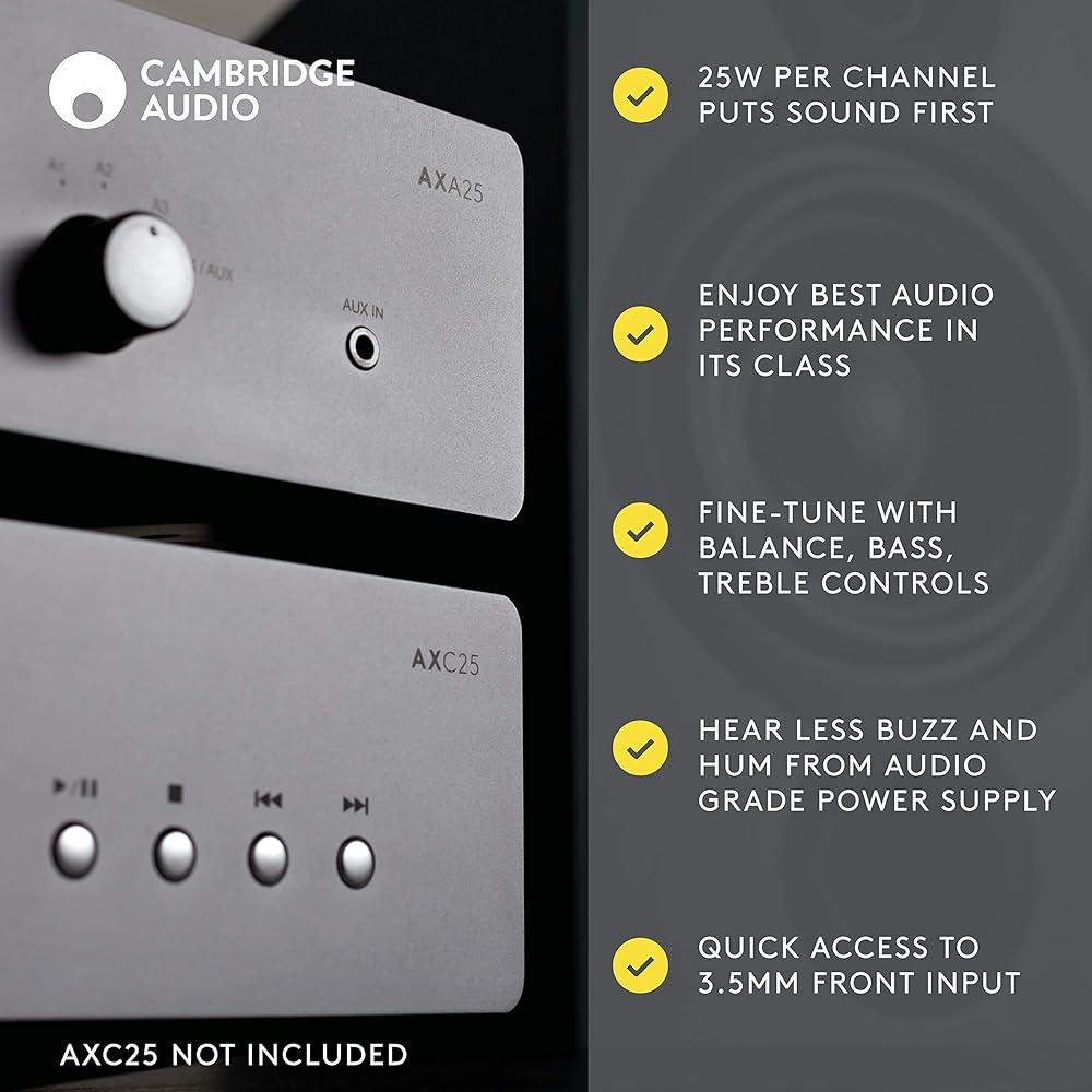 ✓ تصميم بسيط، صوت مذهل - صممت Cambridge Audio جهاز AXA25 ليكون مضخم صوت مثاليًا لمستوى الدخول دون الميزات المعقدة التي لا تحتاج إليها. يحتوي AXA25 على 25 واط لكل قناة، ومدخل 3.5 ملم، و4 مدخلات تناظرية.