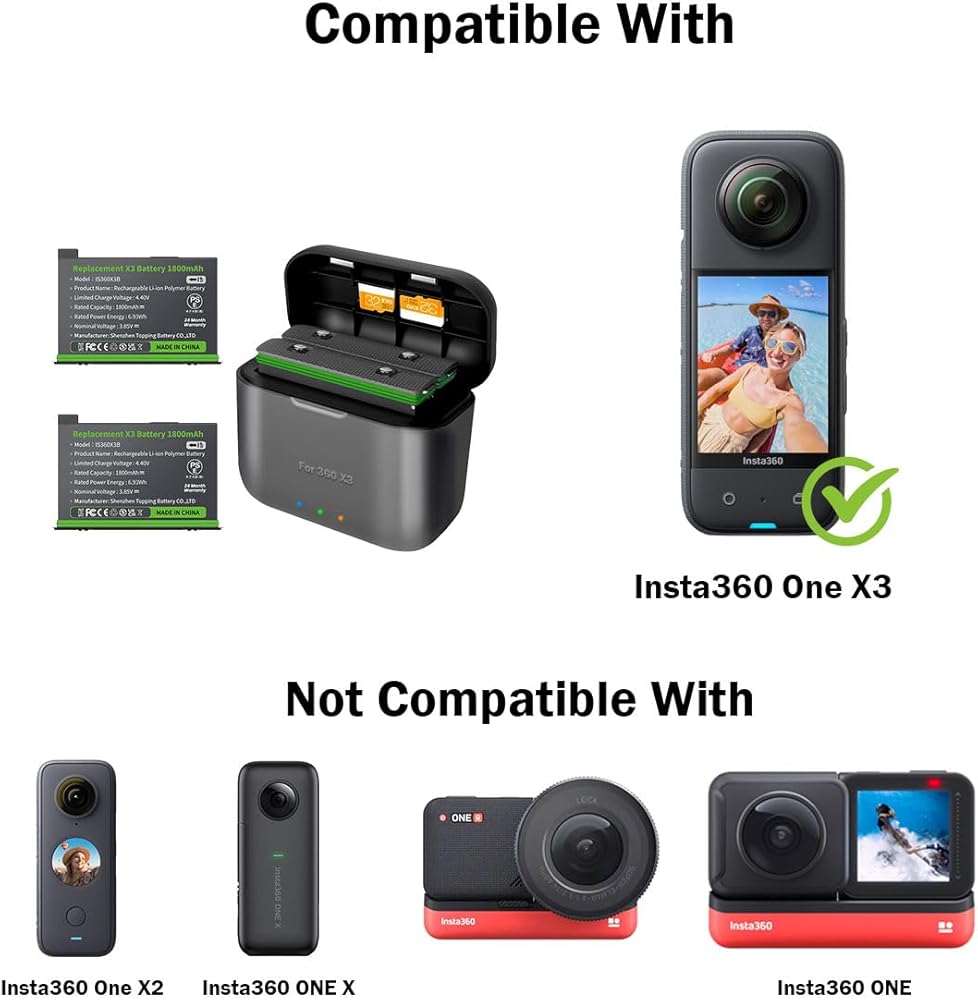 【محور شاحن سريع مناسب لـ Insta360 X3】شاحن بطارية متوافق مع بطارية Insta 360 x3 Li-ion Polymer.