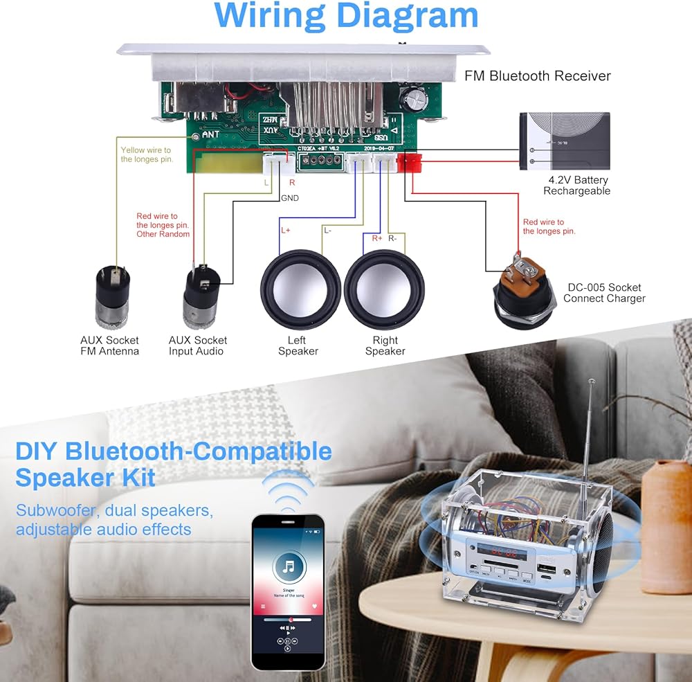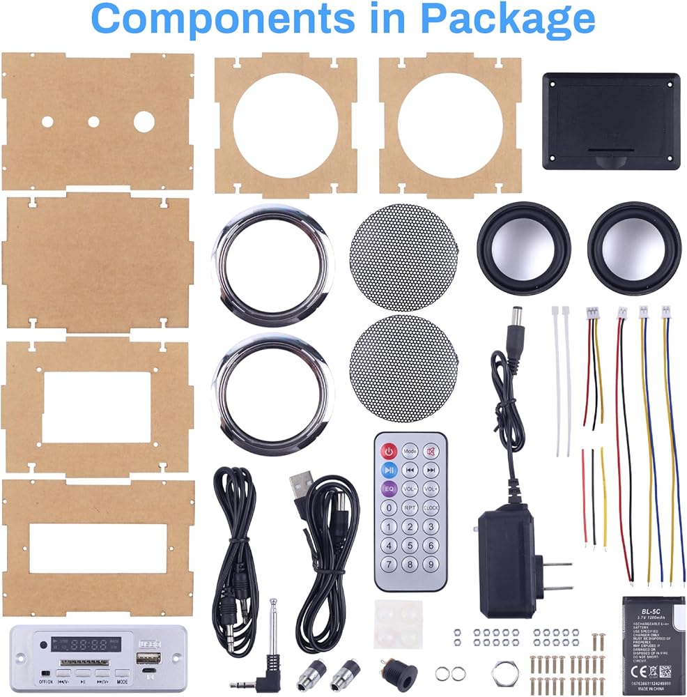 【مثالية للأنشطة الخارجية】معززة بصندوق بطارية قابل لإعادة الشحن، تصبح مجموعة السماعات المتوافقة مع البلوتوث جاهزة للاستخدام في الهواء الطلق بمجرد تركيب البطاريات (متضمنة). سواء كنت في رحلة أو تمارس أنشطة خارجية، يتيح لك مكبر الصوت المحمول هذا الاستمتاع بالموسيقى والراديو. يعمل مضخم الصوت + مكبر الصوت المزدوج على رفع مستوى تجربتك السمعية. علاوة على ذلك، تشتمل مجموعة مشروع اللحام على جهاز تحكم عن بعد سهل الاستخدام لتشغيل سهل.