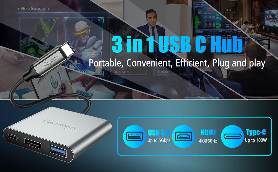 【محول USB-C إلى HDMI 3 في 1 】 محول USB من النوع c إلى hdmi / usb-c/ usb 3.0 متعدد المنافذ مناسب للترفيه في المسرح المنزلي والمكتب والمعارض والعروض التقديمية والتدريس وما إلى ذلك. 3 منافذ يمكن أن تعمل في في الوقت نفسه، يتيح لك حل المنتج الجيد إمكانية الشحن بشكل أسرع وأكثر استقرارًا وبدقة أعلى، مع حجم مثالي يمكن حمله في الجيب