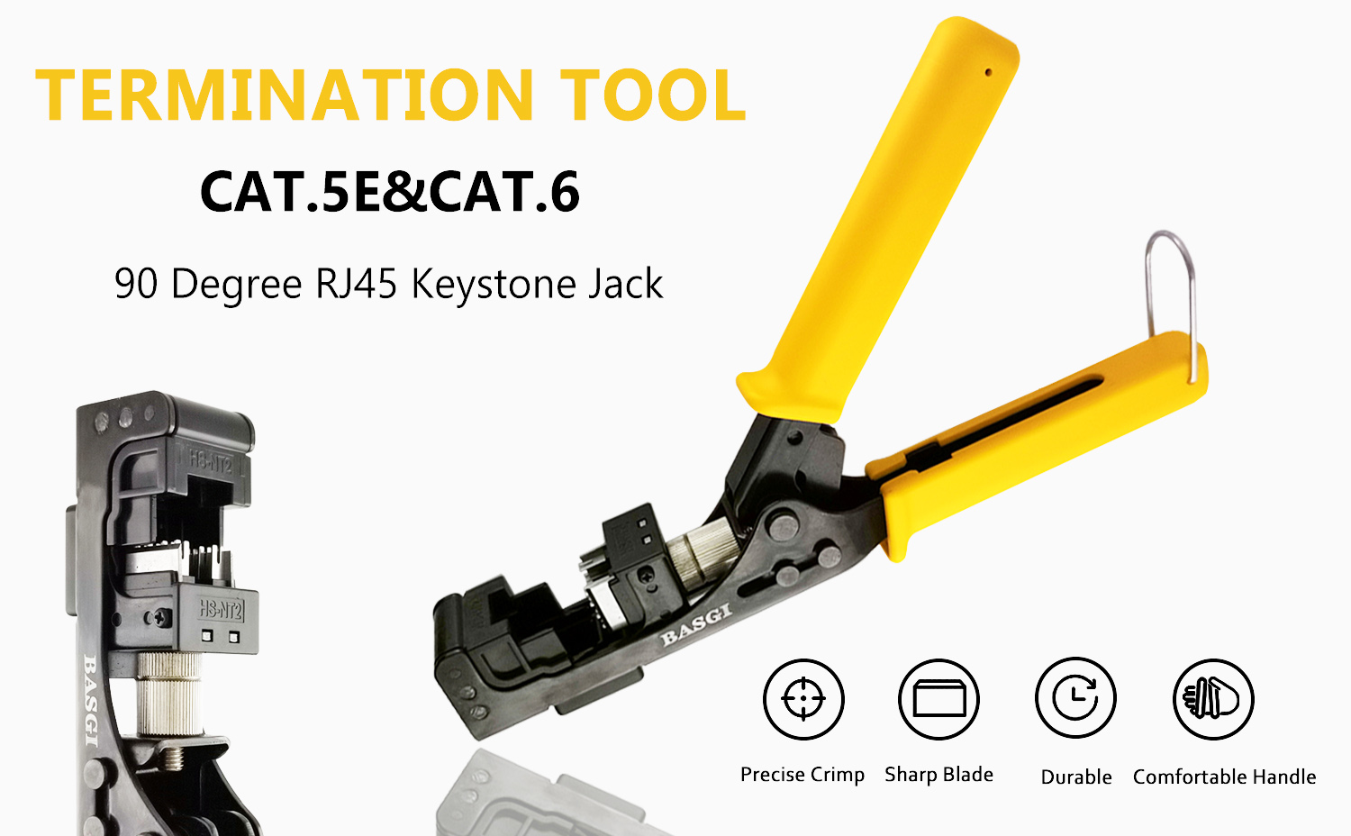 BASGI 90 Degree RJ45 Keystone Jack Termination Tool with 10 CAT5E Keystone Jacks and 10 CAT6 Keystone Jacks
