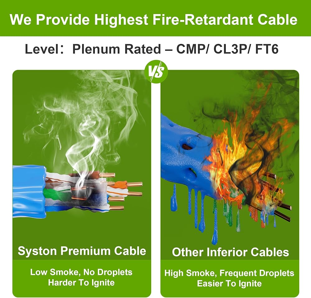 • تصنيف CMP-Plenum - أعلى مستوى من معايير مثبطات اللهب، لراحة البال في حالة نشوب حريق.