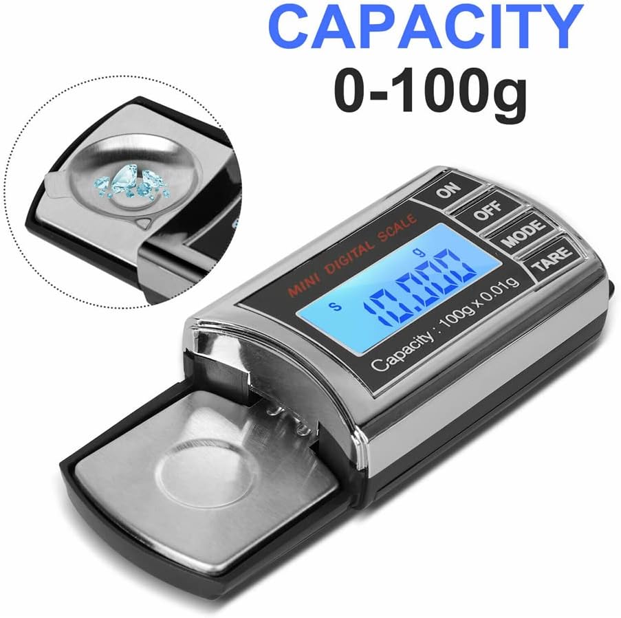 الدقة: 0.001 جرام. دقة عالية ومقياس دقيق لضبط قوة القلم بدقة. صينية من الفولاذ المقاوم للصدأ لوزن المجوهرات الصغيرة والخرز وما إلى ذلك؛ الطاقة: بطاريتان AAA ((غير متضمنة)