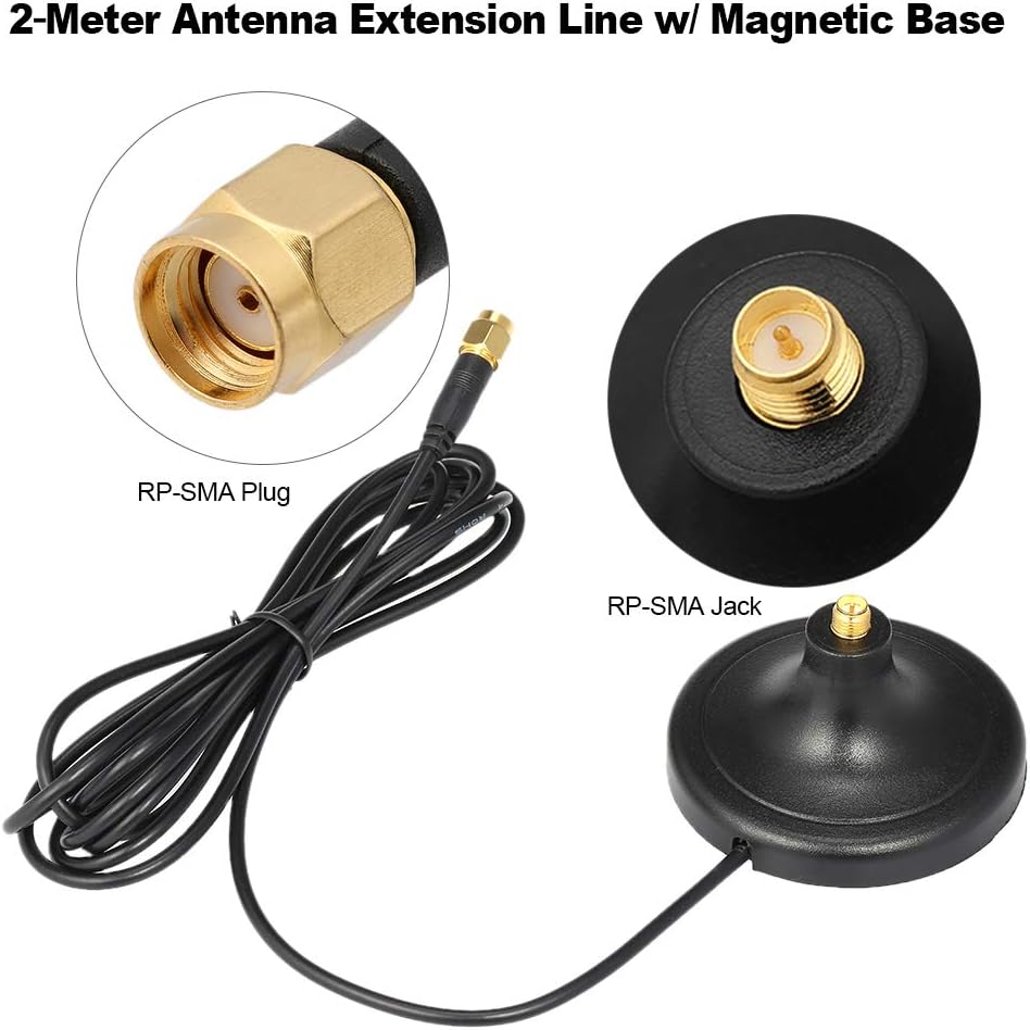 قاعدة هوائي موصل RP-SMA رائعة للهوائيات مع موصل RP-SMA. مع القاعدة المغناطيسية، يمكنك وضع الهوائيات الخاصة بك على أي سطح معدني للحصول على إشارة أفضل. قم بتحسين نطاق الإشارة الفعال، وحل الوضع غير المستقر لسقوط الواي فاي.
