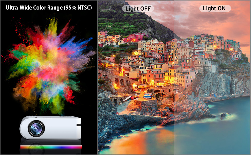 💡【1080P HD & 9000L & 10000: 1 نسبة تباين】مع دعم 1920x1080P، سطوع رائع 9000L، نسبة تباين الألوان 10000:1، مجهزة بمحرك الألوان المتقدم MStar وتقنية MEMC، يوفر جهاز العرض الصغير Yaber تفاصيل أكثر وضوحًا وألوان أكثر حيوية لك التمتع. 6 طبقات عدسة ألمانية الصنع، نفاذية الضوء تصل إلى 99%، تضمن سطوع الصورة. باستخدام رقائق LCD اليابانية المتقدمة 4.0، يمكن لجهاز العرض هذا استعادة أصالة اللون إلى أقصى حد.