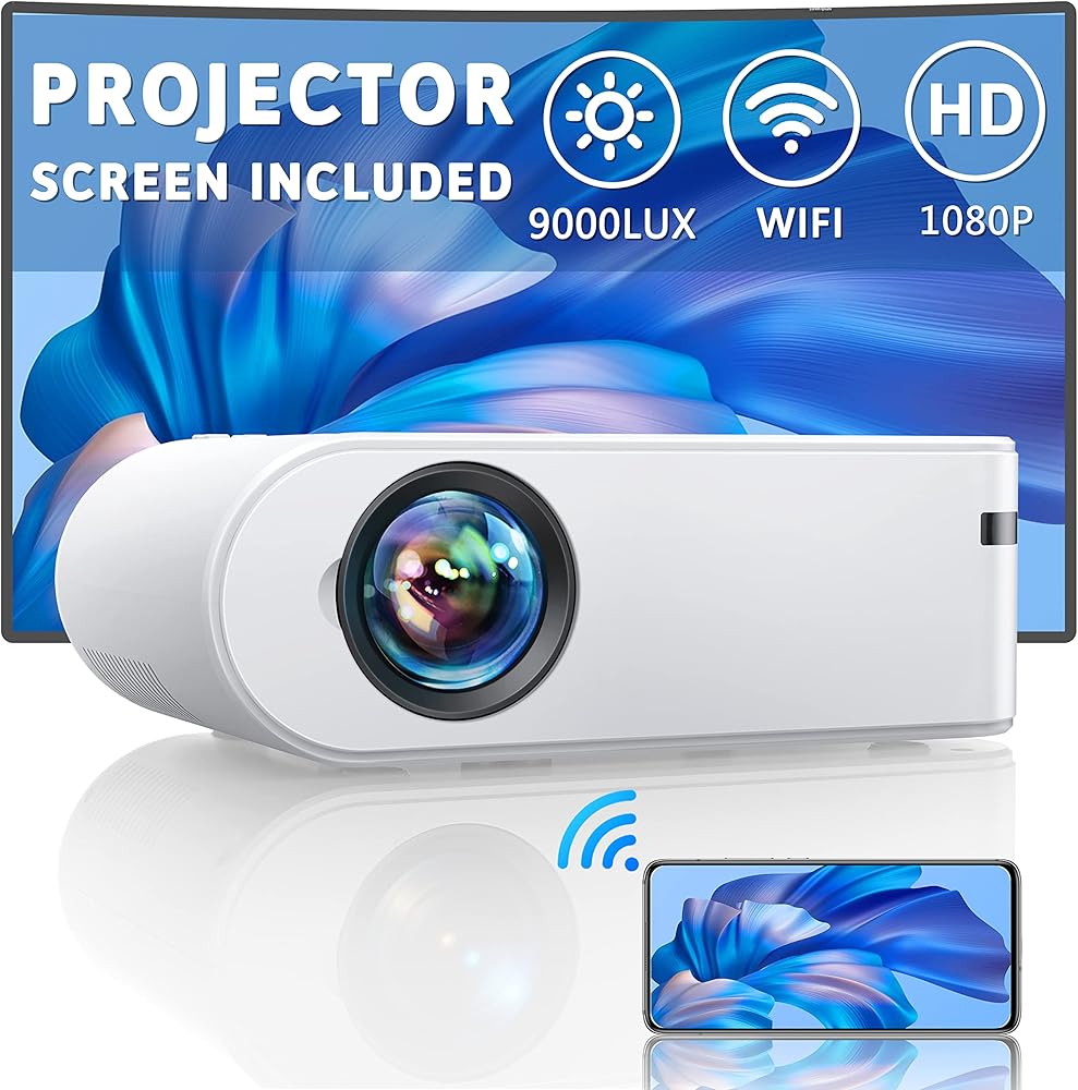 جهاز عرض YABER صغير مع شاشة، جهاز عرض أفلام خارجي بدقة 1080 بكسل عالي الدقة 9000 لتر، جهاز عرض واي فاي محمول متوافق مع عصا التلفاز/iOS/Android/TV Stick/PC/PS5، للمسرح المنزلي والأفلام الخارجية