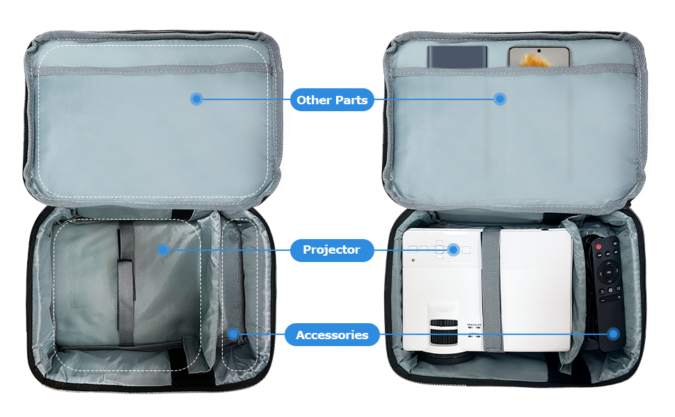 حقيبة جهاز عرض YOWHICK، حقيبة حمل للسفر متوافقة مع جهاز العرض DP01، الناتج المحلي الإجمالي 1، DP03، المزيد من أجهزة عرض الأفلام - مقاومة للخدش وفواصل المقصورة، 10.8 بوصة × 7.7 بوصة × 3.6 بوصة