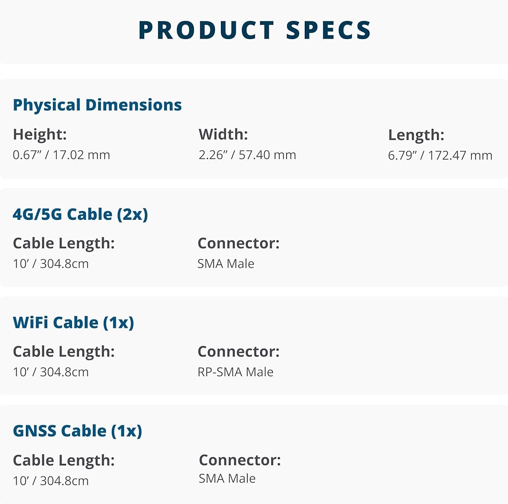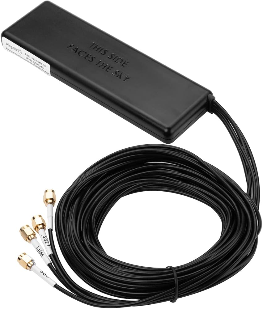 هوائي Airgain ULTRAMAX™ Glass 2x2 MIMO 4G 4 في 1 عالي الأداء مثبت على الزجاج الأمامي - لـ Cisco وCradlepoint وDigi وPeplink وما إلى ذلك (حامل لاصق، كابلات 10 بوصات، 2X LTE SMA-M، 1x Wi-Fi، 1x GNSS سما-م)
