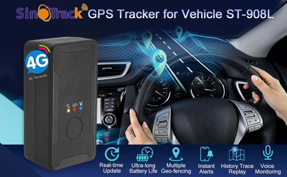 SinoTrack 4G GPS Tracker جهاز تعقب GPS مغناطيسي للمركبة في الوقت الحقيقي تنبيه مخفي GPS محدد عمر بطارية قوي مع زر SOS جهاز موقع مقاوم للماء لجميع السيارات والدراجات النارية والشاحنات ST-908L
