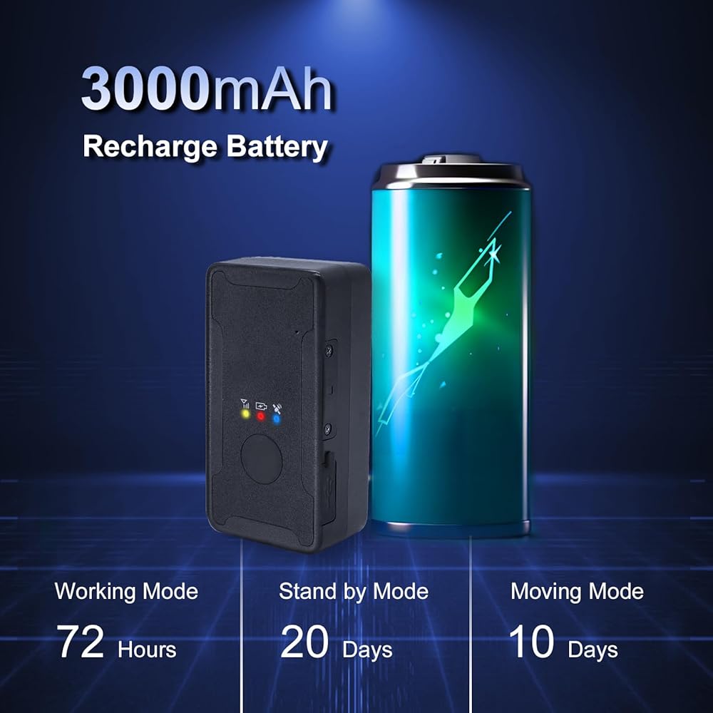 عمر بطارية ممتد: مزود ببطارية عالية السعة تصل إلى 3000 مللي أمبير في الساعة، يتيح جهاز تعقب GPS هذا الاستخدام الممتد دون إعادة الشحن المتكرر. يمكنك الشحن بسهولة باستخدام USB أو شواحن السيارة لاستخدام طويل الأمد