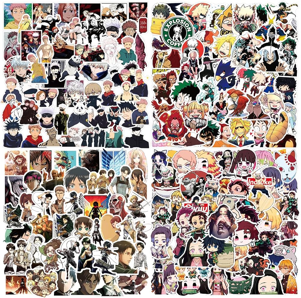 200 قطعة من ملصقات انيمي مقاومة للماء من الفينيل للابتوب وزجاجات المياه وزجاجات المياه ولوح التزلج والكمبيوتر والجوال للاطفال والمراهقين (200 قطعة من ملصقات الرسوم المتحركة)