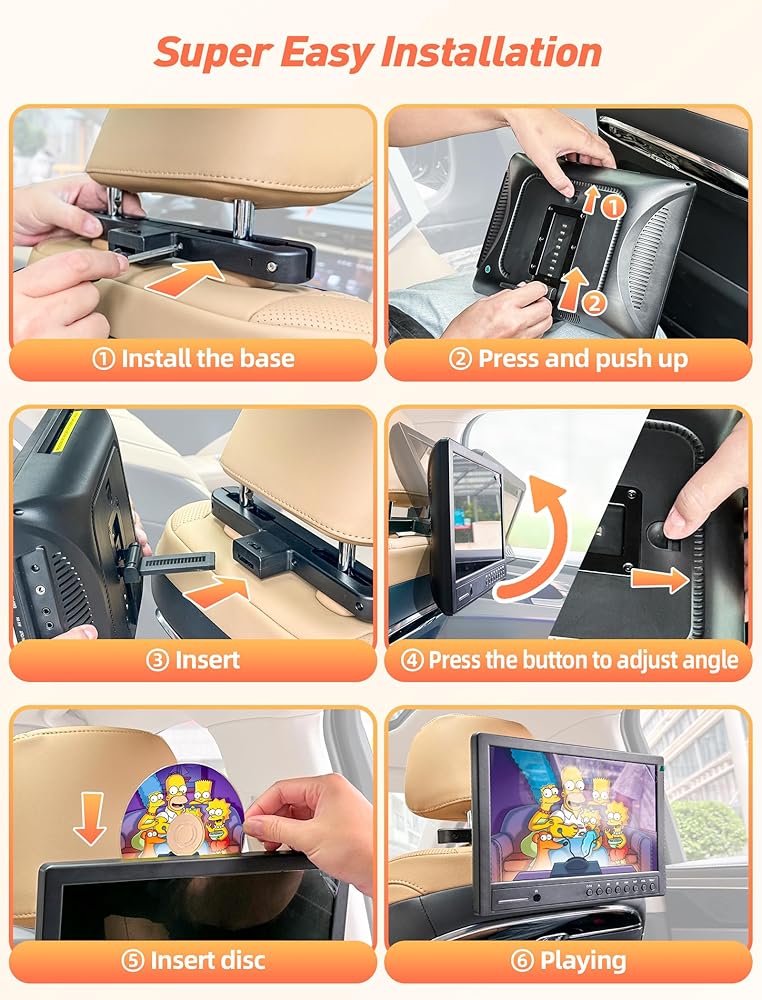 🎵【زاوية عرض قابلة للتعديل ومكبرات صوت مزدوجة】يأتي مشغل دي في دي لمسند الرأس في السيارة مع دعامة تثبيت، يمكنك ضبط زاوية الرؤية بحرية وفقًا لاحتياجاتك. لم يعد الأطفال بحاجة إلى حمل مشغل دي في دي المحمول لفترات طويلة من الوقت، يمكنهم مشاهدته في وضع أكثر راحة وصحة. يحتوي مشغل دي في دي للسفر للسيارة على مكبرات صوت محيطية مزدوجة مدمجة لتجربة سمعية وبصرية أفضل.