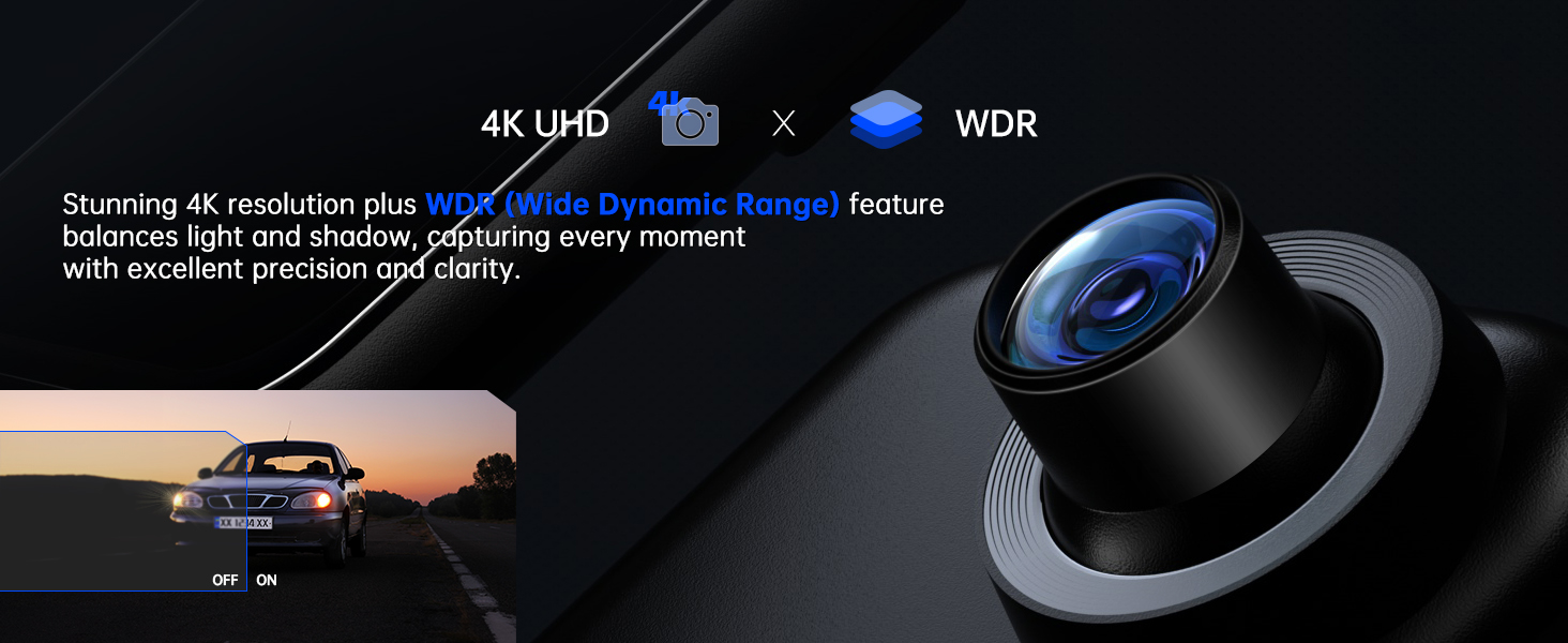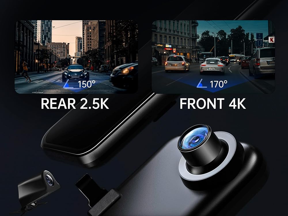 وضوح 4K+2.5K وWDR: تجمع كاميرا داش المرآة الخاصة بنا بين كاميرا أمامية 4K UHD وكاميرا خلفية مقاومة للماء 2.5K، مما يوفر تغطية فائقة للرؤية الأمامية والخلفية لتعزيز السلامة. تتميز بتقنية WDR المتقدمة، فهي تتكيف بسهولة مع ظروف الإضاءة المتغيرة، مما يضمن رؤية ليلية استثنائية من كلا الزاويتين.