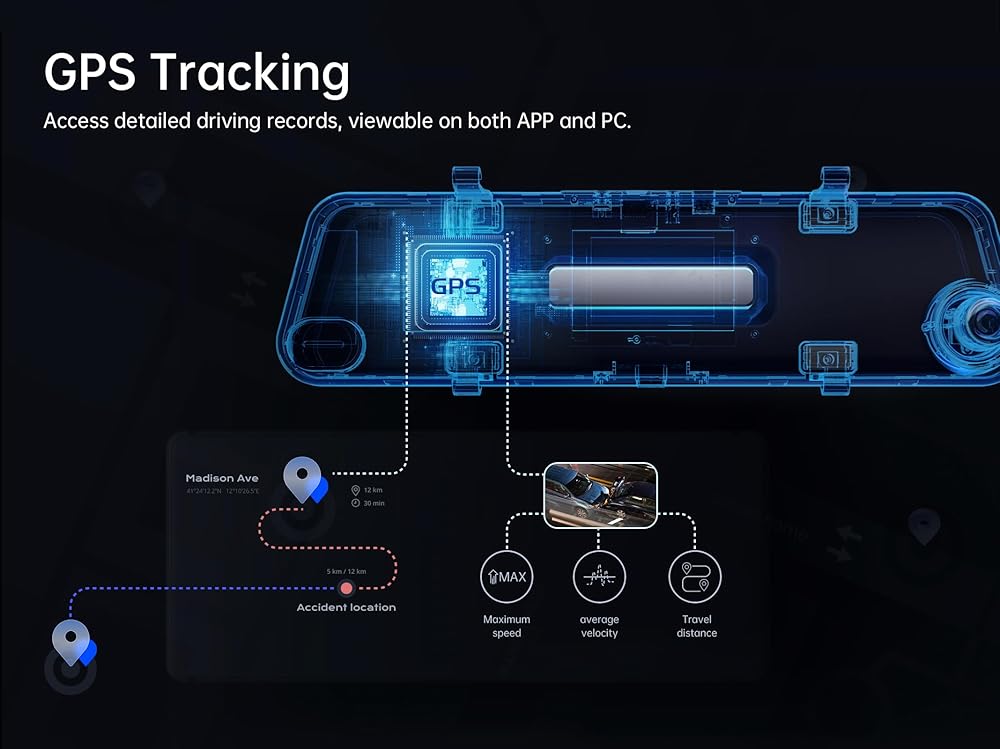 شاشة IPS وشاشة لمس ذكية مقاس 12 بوصة - استمتع بالتسجيلات فائقة الوضوح ليلًا ونهارًا على شاشة اللمس IPS مقاس 12 بوصة مع معالجة مضادة للوهج. إنها تخفي مرآة الرؤية الخلفية الأصلية بسلاسة مع توفير رؤية منقسمة للشاشة الأمامية والخلفية المتزامنة عرض.