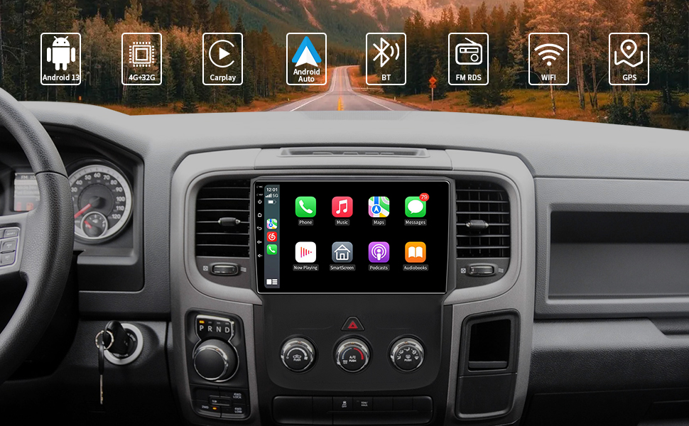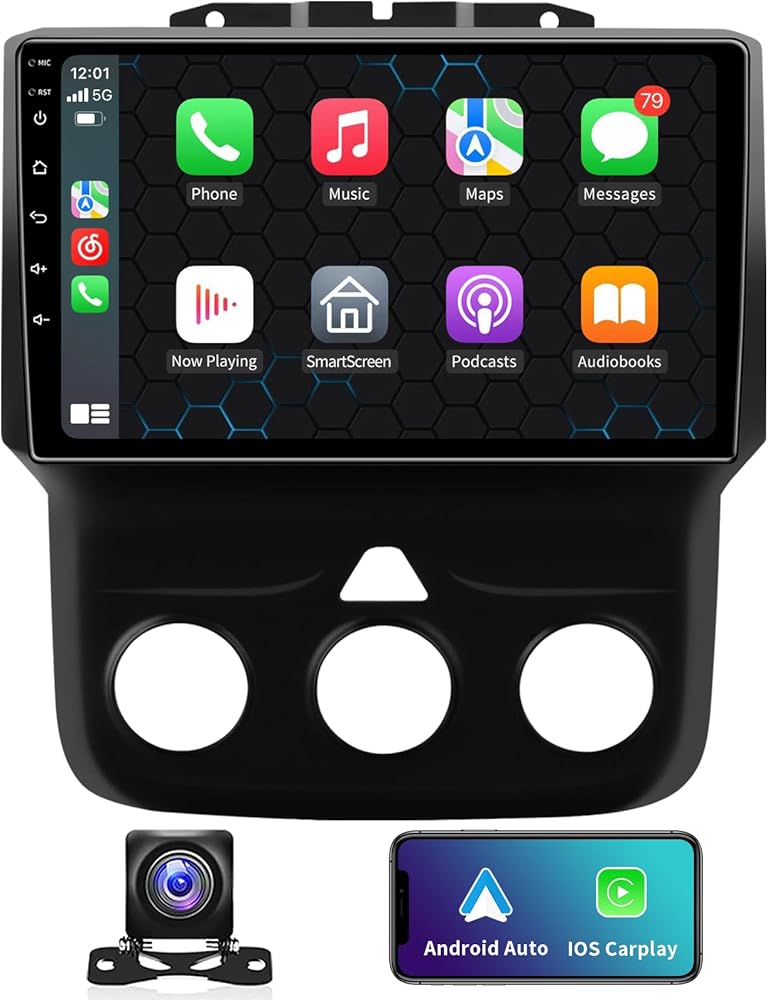 راديو ستيريو للسيارة اندرويد 13 لسيارة دودج رام 1500 2500 3500 2013-2018، طقم تركيب راديو بديل دي اس بي ستيريو تلقائي (4GB+32GB) كاربلاي لاسلكي واندرويد اوتو جي بي اس (يناسب فقط التيار المتردد اليدوي)