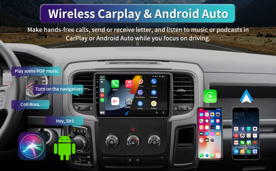 • 🚗【كاربلاي لاسلكي واندرويد اوتو】يدعم كاربلاي اللاسلكي واندرويد اوتو، توصيل أسهل ولم يعد يزعجك الكابلات الفوضوية. قم بإجراء مكالمات بدون استخدام اليدين وإرسال أو استقبال الرسائل والاستماع إلى الموسيقى أو البودكاست في كار بلاي أو اندرويد اوتو أثناء التركيز على القيادة. حافظ على سلامة القيادة. بالإضافة إلى ذلك، فقد اجتازنا شهادة لجنة الاتصالات الفيدرالية الأمريكية (FCC) وشهادة السلامة الأوروبية سي اي.