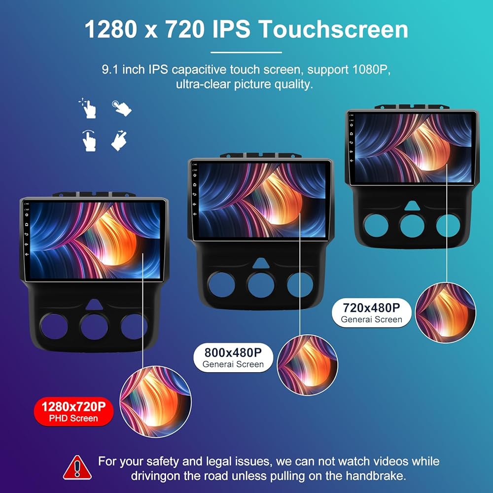 راديو ستيريو للسيارة 4+64 جيجابايت لسيارة دودج رام 1500 2500 3500 2013 2014 2015 2016 2017 2018 مع مجموعة داش ترقية تيار متردد يدوي، نظام اندرويد 12 9 انش بشاشة لمس اي بي اس مدمجة لتشغيل السيارة بنظام اندرويد اوتو