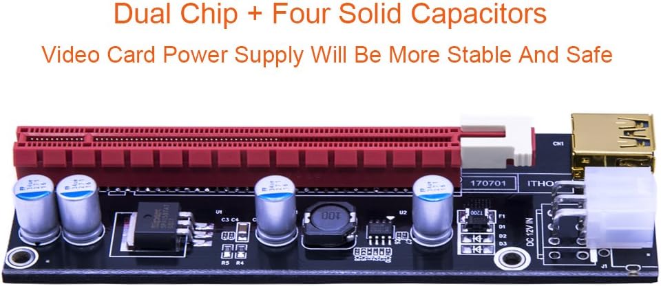 • * Mailiya PCIe Riser, newest and top of the line solution for setting up GPU mining rigs, with upgrade integrated inductor makes the pcie extension card more effective, help you gain more on your miner work.