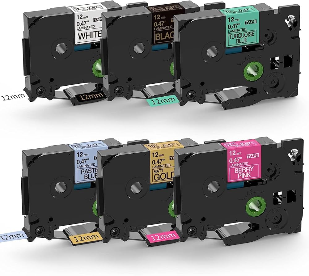 شريط صانع الملصقات تي زد بي تاتش مقاس 12 ملم 0.47 انش متوافق مع صانع الملصقات براذر بي تاتش PTD210 PTD200 PTH110 PTD400 PTD600 (ابيض/ذهبي/ازرق فاتح/تركواز/اسود/زهري بيري)، 6 قطع
