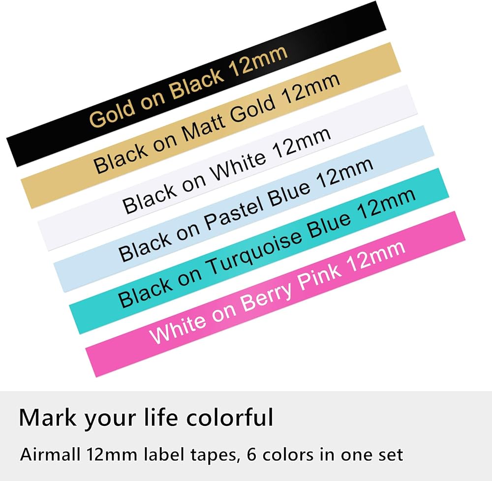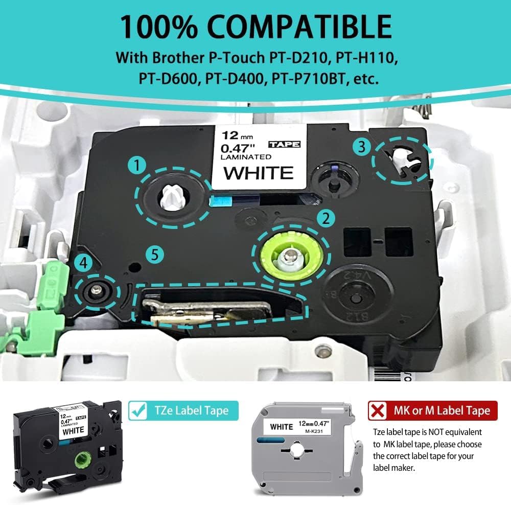 • ما تحصل عليه: 6 قطع من شريط ملصقات TZe TZ المتوافق مع أشرطة ملصقات براذر TZe-231/334/T531، TZe-MQ531 TZe-MQ831 TZ-MQP35 أشرطة الملصقات غير اللامعة. الألوان: أسود على [أبيض/ذهبي/أزرق فاتح/أزرق تركواز]، ذهبي على أسود، أبيض على وردي بيتي. العرض: 12 ملم (1/2 انش)، الطول: 8 متر (26.2 قدم).