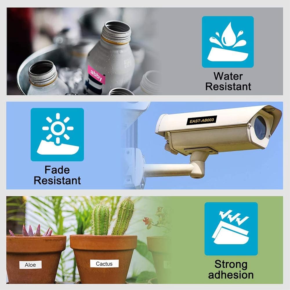 • تدوم طويلاً ومتينة: أشرطة براذر بي تاتش تي زي تي زد المتوافقة مقاومة للماء والشحوم والأوساخ والمواد الكيميائية ومقاومة للحرارة. أشرطة الملصقات ptd210 الخاصة بنا عبارة عن شريط مغلف مع التصاق قوي مما يجعل أشرطة صانع الملصقات مقاس 1/2 انش يمكن استخدامها حتى في الظروف الجوية القاسية.