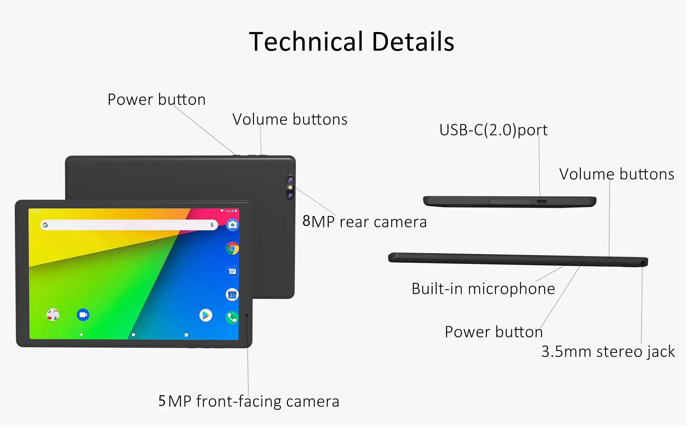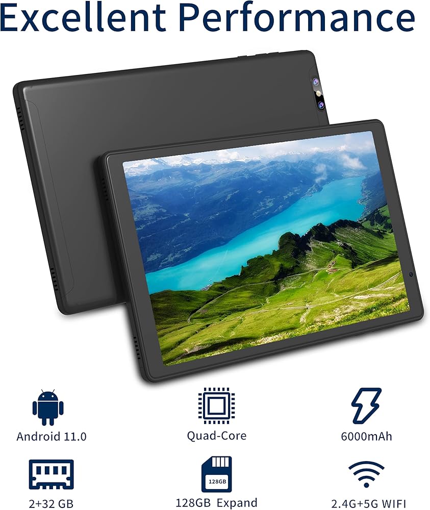 【تابلت اندرويد أكثر عملية】سعة تخزين مدمجة 32 جيجابايت وما يصل إلى 128 جيجابايت من مساحة تخزين بطاقة مايكرو اس دي القابلة للتوسيع لمزيد من المساحة. احتفظ بجميع وسائطك المفضلة معك أينما ذهبت. مثل الصور والألعاب والموسيقى ومقاطع الفيديو والكتب الإلكترونية وما إلى ذلك. يدعم البلوتوث.