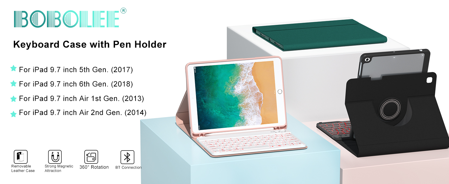 • ✅【دعم BOBOLEE】 تحتوي حافظة لوحة المفاتيح المتينة لجهاز iPad 9.7 بوصة 6th 5th Air 2/Air (ليس لجهاز iPad Pro 9.7 بوصة) على حافظة داخلية ناعمة من مادة TPU، وتحمي أجهزتك من السقوط والخدوش. تتيح لنا لوحة المفاتيح المغناطيسية القابلة للإزالة ضبط رؤية الشاشة وموضع الكتابة. نحن نوفر لك اتصالاً مباشرًا بعد انتهاء الخدمة على مدار 24 ساعة