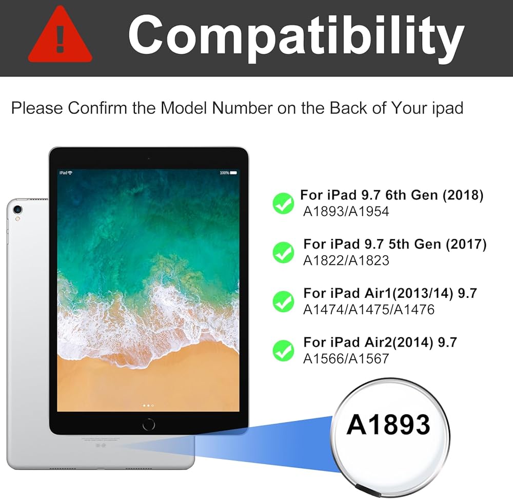 • ✅توافق الحافظة: تتوافق حافظة لوحة المفاتيح مع iPad 9.7 بوصة الجيل السادس إصدار 2018 - A1893/A1954، لجهاز iPad 9.7 بوصة الجيل الخامس إصدار 2017 - A1822/A1823، لجهاز iPad 9.7 بوصة Air الجيل الثاني. إصدار 2014 - A1566/A1567، لجهاز iPad 9.7 بوصة Air 1st Gen. 2013 تم إصداره - A1474/A1475/A1476. يمكن طي حافظة لوحة المفاتيح مثل الكتاب وفتحها مثل كمبيوتر صغير، وسهلة الحمل، وهي مثالية للعمل وتدوين الملاحظات والكتابة في المكتب أو المدرسة أو أثناء السفر.