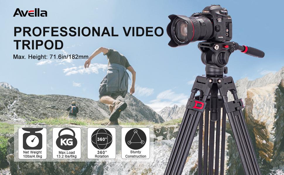 افيلا حامل ثلاثي للكاميرا مصنوع من خليط معدني من الألومنيوم، ممتاز في المتانة والثبات. كحامل ثلاثي القوائم احترافي للفيديو، يبلغ أقصى قطر للحامل ثلاثي القوائم 16 ملم، ويمكن أن تصل سعة الحمل القصوى إلى 13 باوند. عند إضافة فلاش أو مقبض بطارية إلى الكاميرا في المستقبل، أو التصوير باستخدام معدات كاميرا أثقل، سيساعدك الحمل الأقصى 13 باوند على تجنب انهيار كل شيء، وتجنب إتلاف الكاميرا والعدسة.