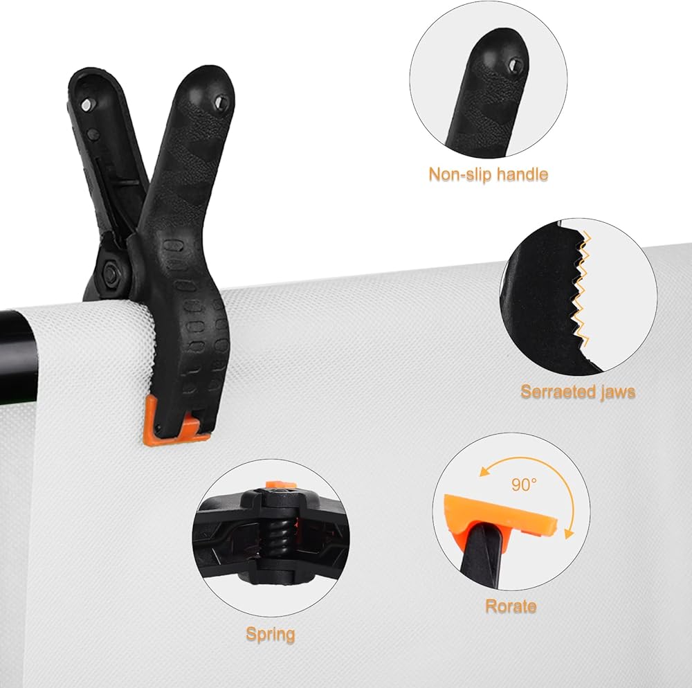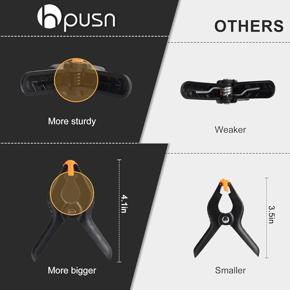 Hpusn خلفية الربيع المشابك 6 حزمة، 4.5 بوصة مقاطع الثقيلة لحامل الخلفيات، خلفيات استوديو الصور الورقية، خلفية الموسلين، قماش
