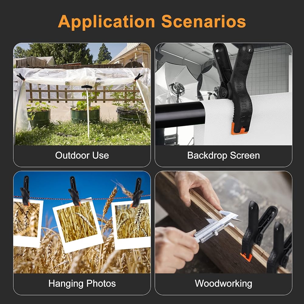 Provides instant holding power and is easy to re-position during assembly, fastening, and gluing work; Perfect companions for your photography, backdrops, woodworking, etc.
