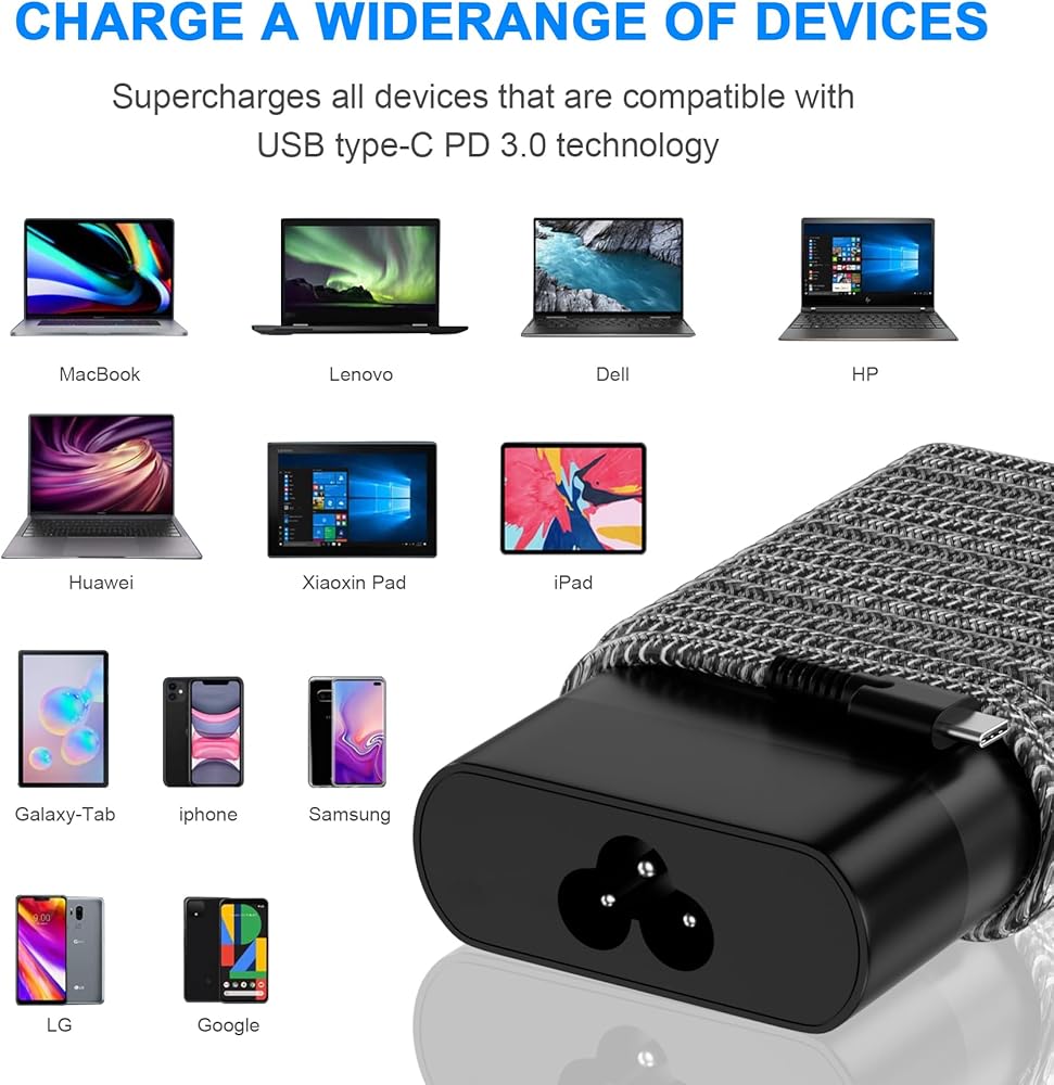 ملحوظة: شاحن الكمبيوتر المحمول هذا مناسب لجميع أجهزة الكمبيوتر المحمول التي تكون 90 وات 65 وات 45 وات من النوع c أو USB c.
