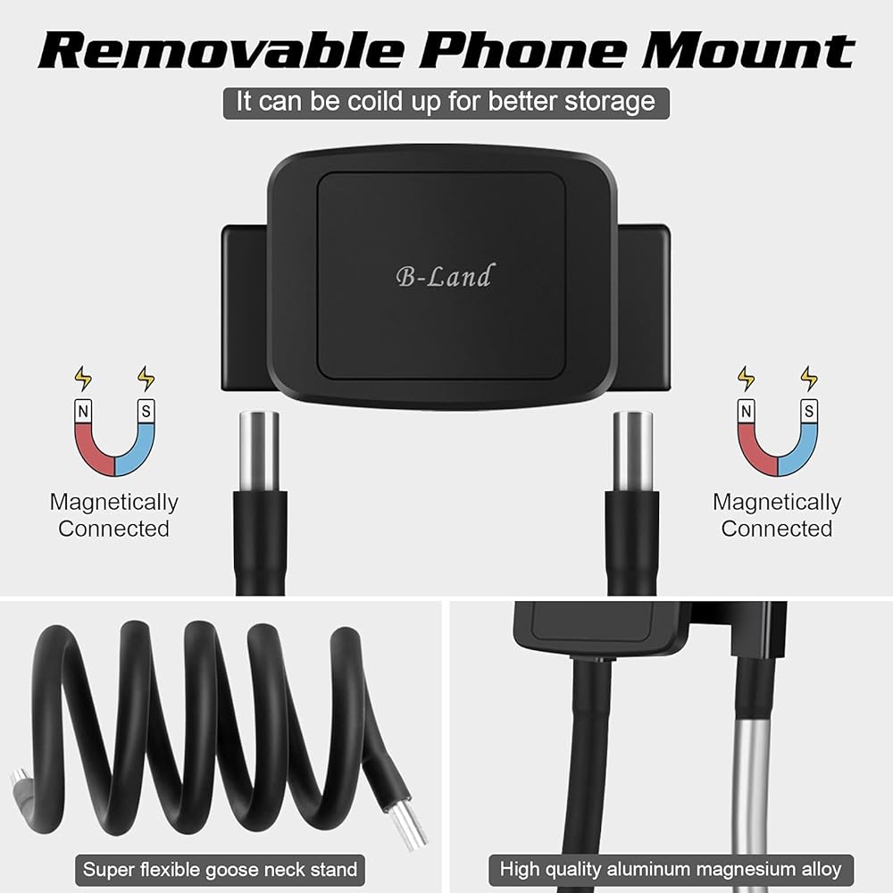 حامل الهاتف القابل للإزالة: يتم توصيل الحامل وذراع عنق الإوزة ببعضها البعض، والتي يمكن لفها بشكل لطيف لتخزين أفضل. مثالية للسفر! بالإضافة إلى ذلك، يمكن استخدام الحامل نفسه كحامل هاتف مكتبي بشكل منفصل.