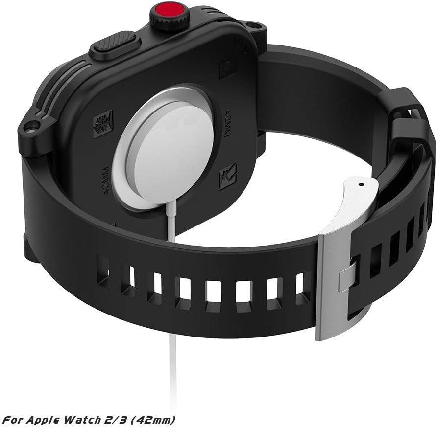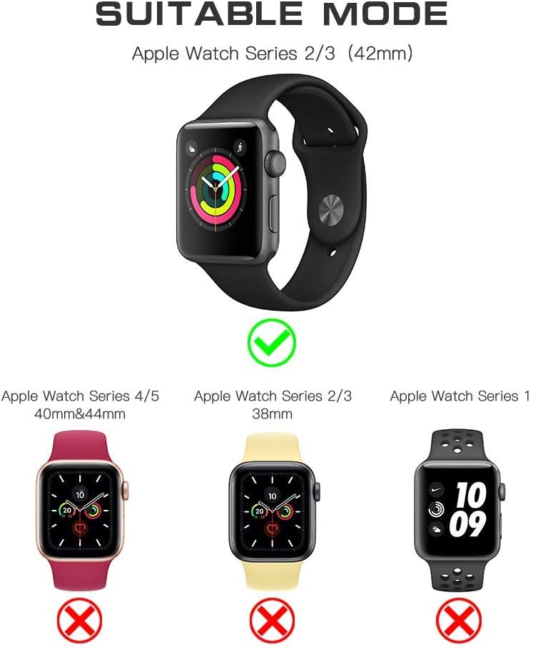 【حماية كاملة】: حافظة ساعة اي ووتش سيريز 3 و2 مقاس 42 ملم محمية بالكامل ولكنها تعمل بكامل طاقتها، شحن لاسلكي مغناطيسي، بلوتوث، مراقب معدل ضربات القلب، مكبر صوت وميكروفون. يرجى ملاحظة: تطبيق اي كيه جي غير متاح.