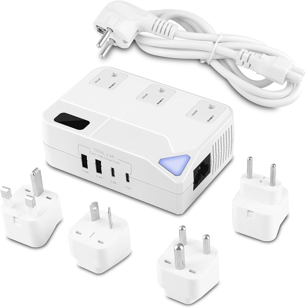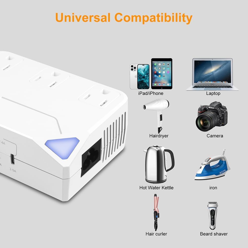 fbdd محول الجهد لنا إلى أوروبا ومحول السفر العالمي، 2300 واط 220 فولت إلى 110 فولت محول الطاقة التحرير والسرد، 4 محول powe المكونات، محول السفر محول الهاتف الخليوي لمجفف الشعر للمملكة المتحدة إيطاليا