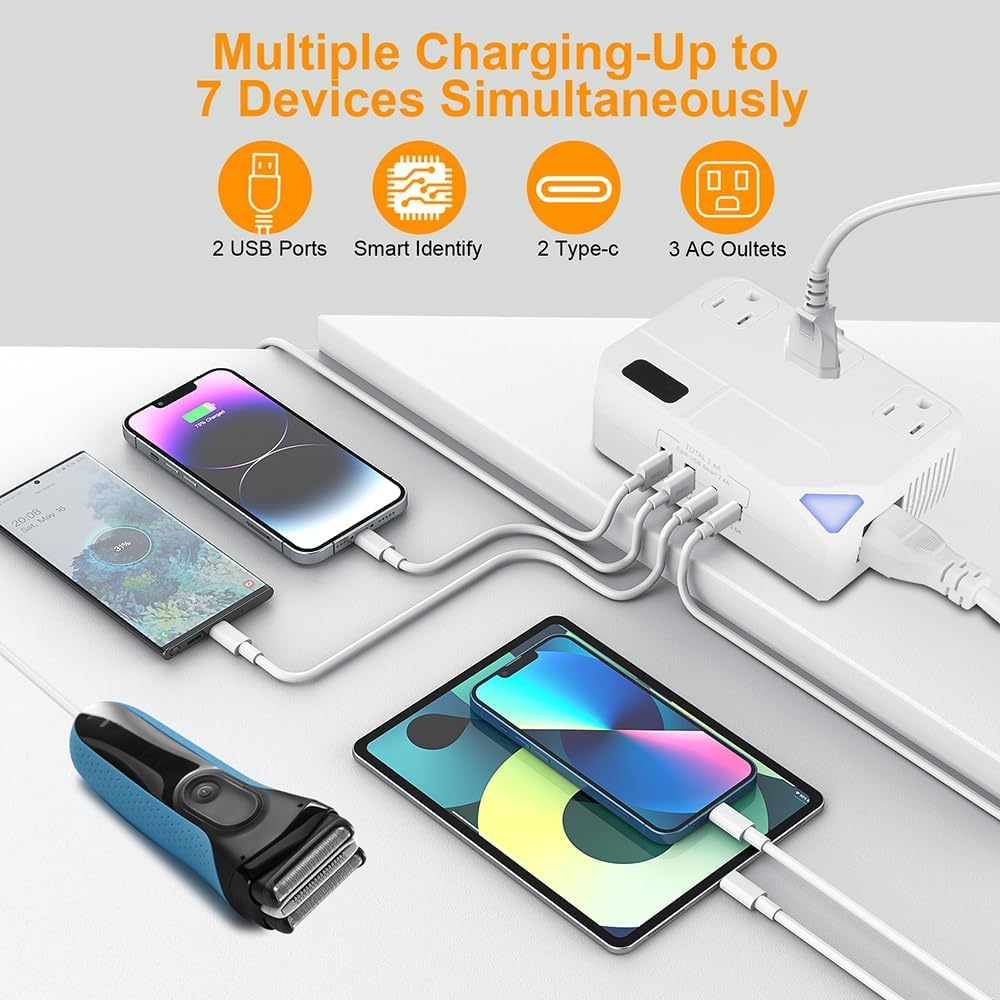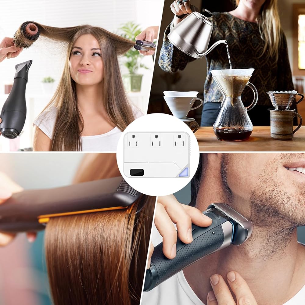 [طاقة عالية جدًا] يدعم طاقة الإخراج 2300 واط، لذلك يمكنك استخدام أي جهاز كهربائي عالي الطاقة، حتى سخان المياه. وهو يدعم العديد من أنواع الأجهزة المختلفة، بما في ذلك الهواتف المحمولة وأجهزة الكمبيوتر المحمولة والأجهزة اللوحية والكاميرات والغلايات والمصابيح المكتبية ومجففات الشعر وفرشاة الأسنان الكهربائية وشفرات الحلاقة ومكاوي التجعيد والغسالات الصغيرة والمزيد.