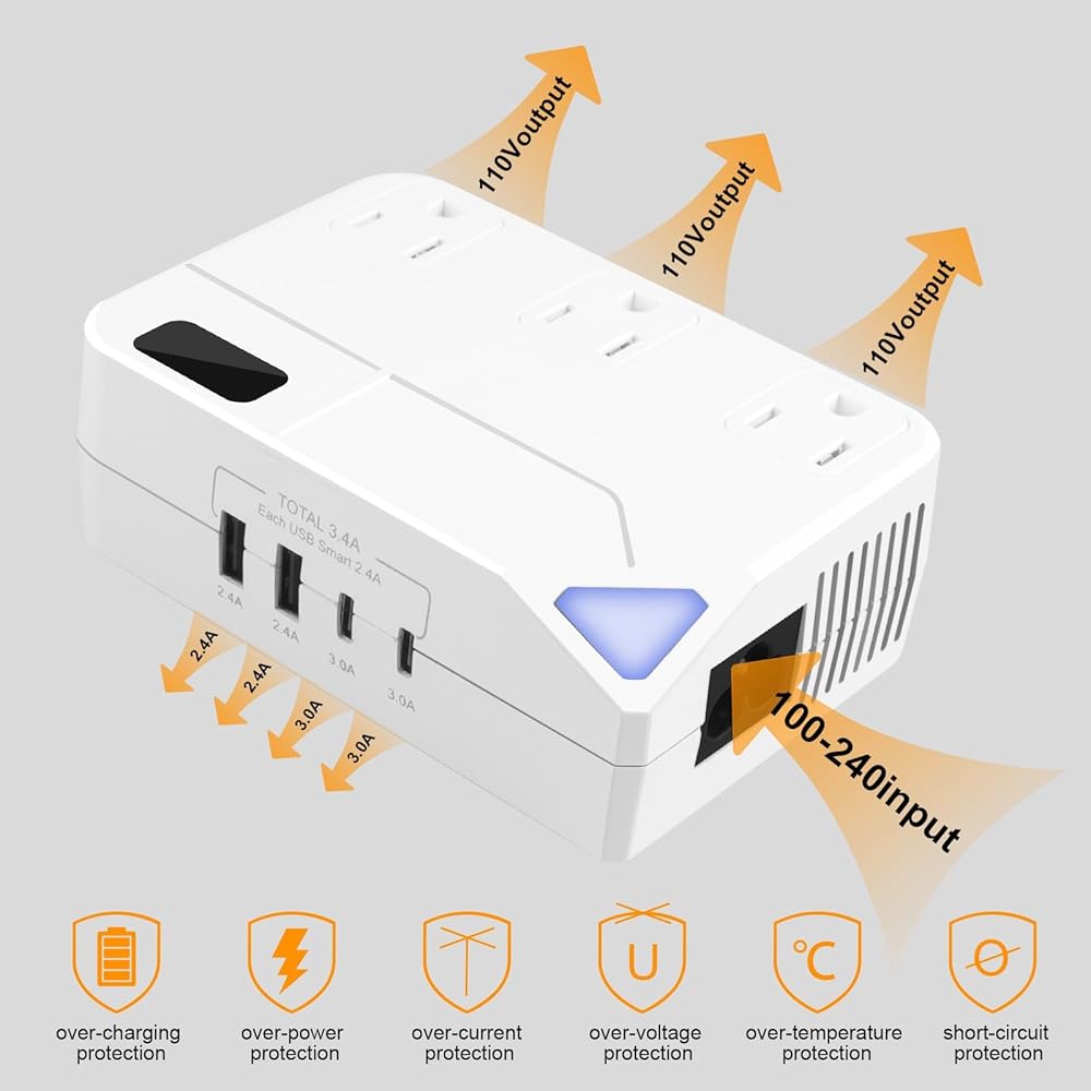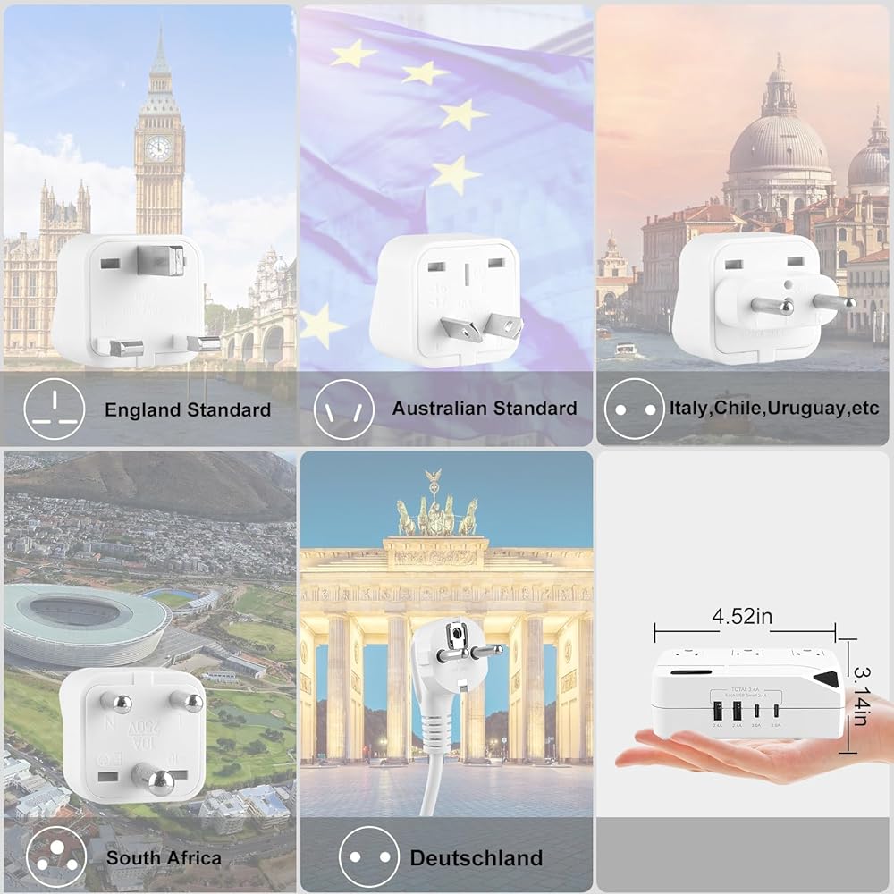 [هل تريد أن تكون أجهزتك الإلكترونية متاحة في جميع أنحاء العالم؟] - منتجنا مصمم لهذا الغرض، فهو يحتوي على مجموعة متنوعة من المقابس ويمكن استخدامه في 156 دولة حول العالم. يحتوي محول الجهد الكهربي على 5 مقابس (النوع A/B، C، E/F، G، I، J، N) بما في ذلك أوروبا والولايات المتحدة وآسيا وأستراليا، إلخ. يدعم 220 إلى 110