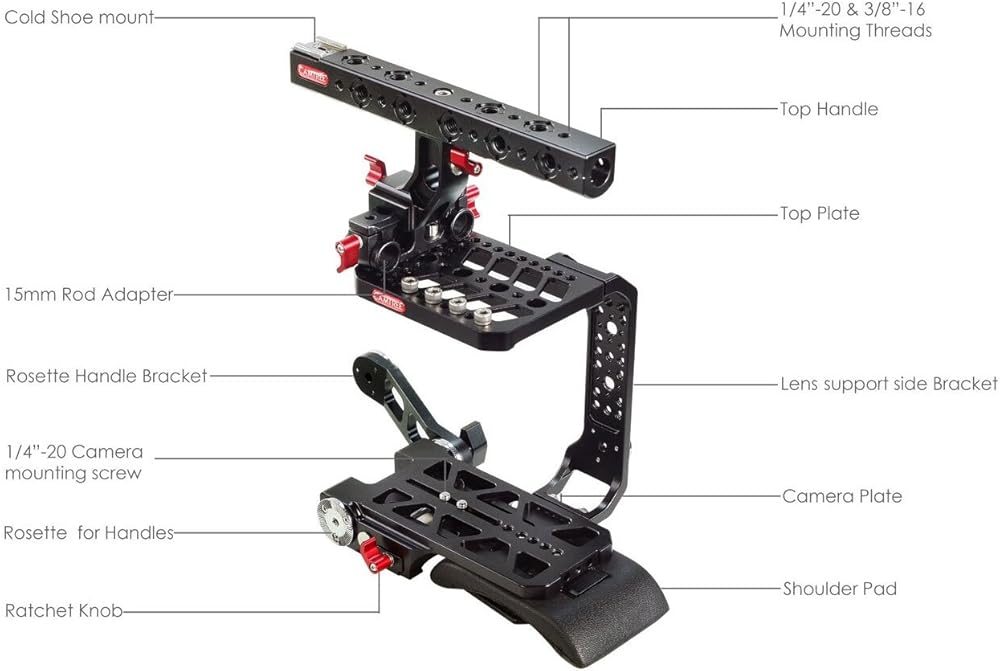 قفص كاميرا كامتري هنت لبلاك ماجيك أورسا ميني (CH-BMUM-C) هو نظام دعم احترافي للحصول على لقطات مثالية. تتضمن حزمة الأداء هذه ذراع تمديد صغير من URSA يأتي مع حامل وردة دقيق على الكاميرا والذي يمكن تعديله إلى الزاوية المفضلة.