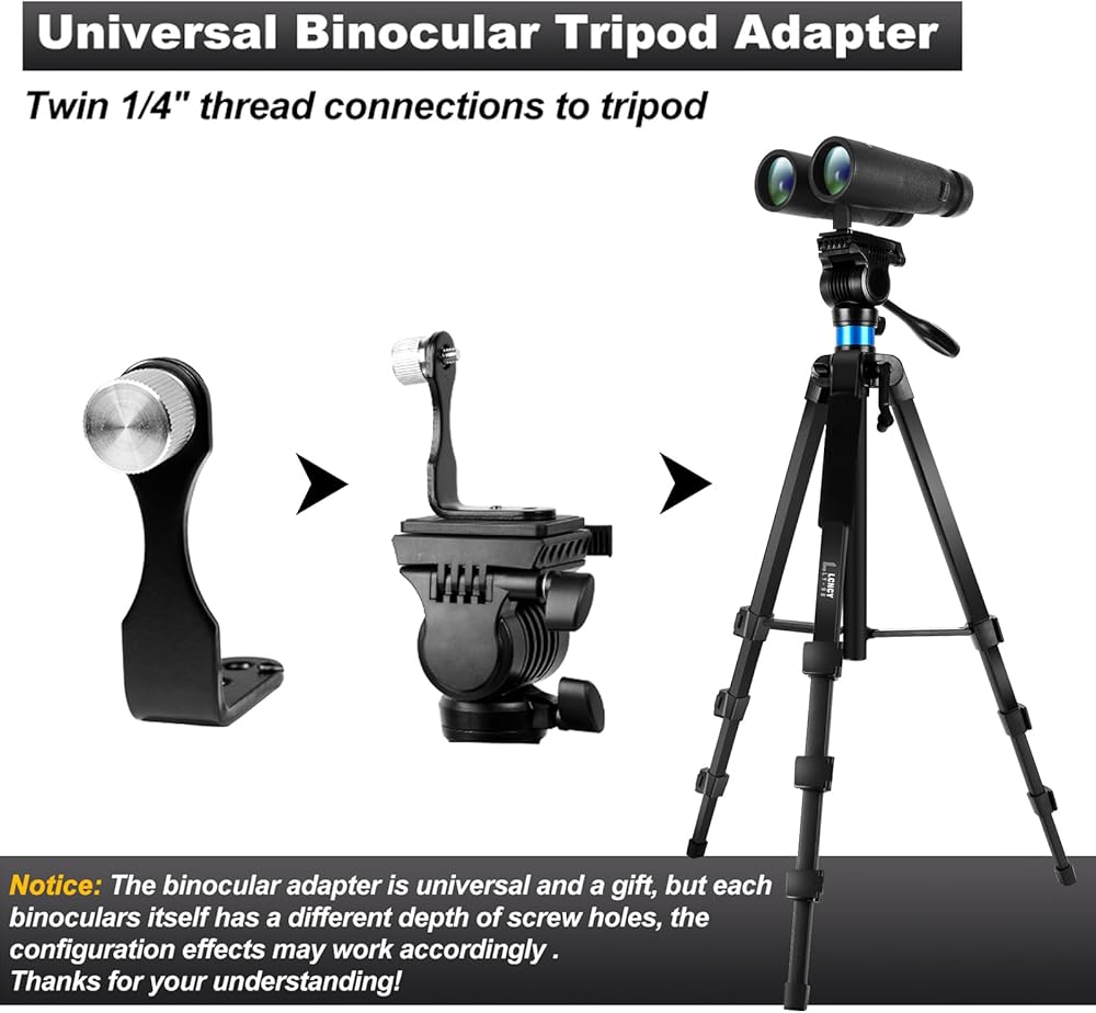 【Stabilize Sturdy】 Binocular and shooting tripod, using thickened premium aluminum tube is built to last in rugged use, providing stable and secure support on the roughest of outdoor, maximum protection of your camera and binoculars and other equipment.