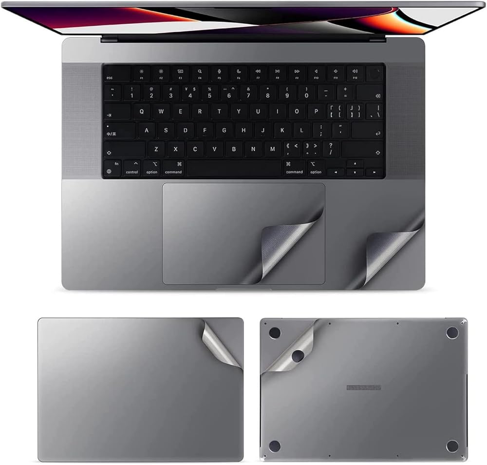 من أجل ملاءمة التصميم المنحني الجمالي الأصلي لجهاز ماك بوك، هناك مسافة حوالي 1/25 انش بين ملصقات الجلد وحافة ماك بوك، والتي يمكن أن تمنع ملصقات البشرة من التجعد، وهو تصميم احترافي، وليس مشكلة في الجودة.