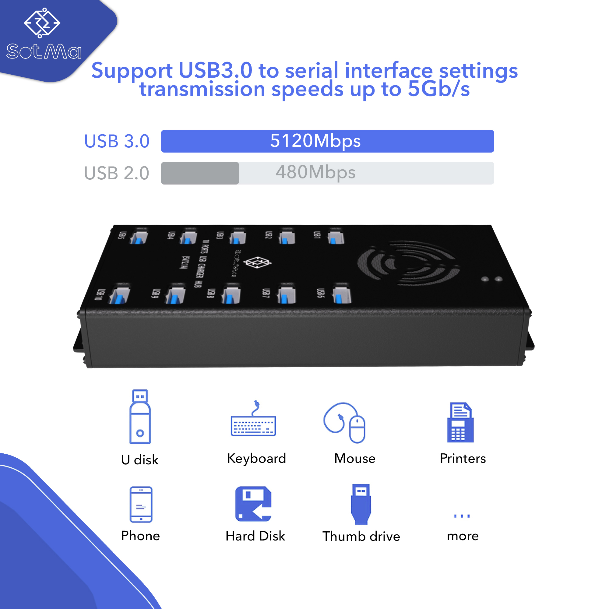 فائق السرعة: يضمن موسع منفذ USB هذا ومنفذ USB المتعدد نقل البيانات بسرعة (5 جيجابايت في الثانية) وشحن ما يصل إلى 10 أجهزة في نفس الوقت. متوافق مع أنظمة التشغيل Windows 2000/Vista/XP/7/MAC9.1/10.2. ليست هناك حاجة للسائقين