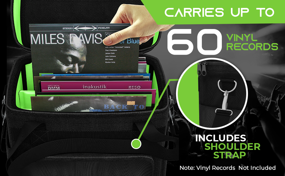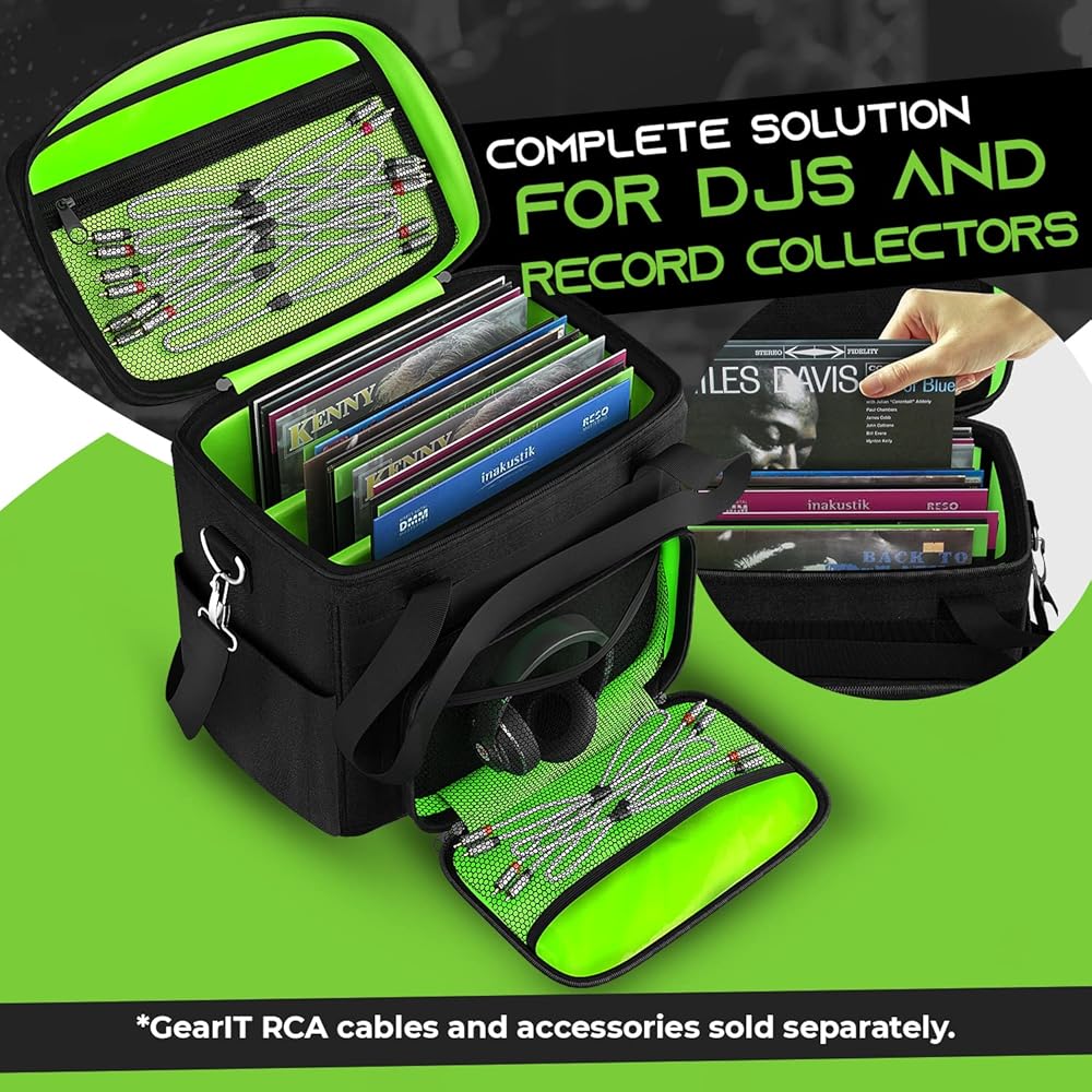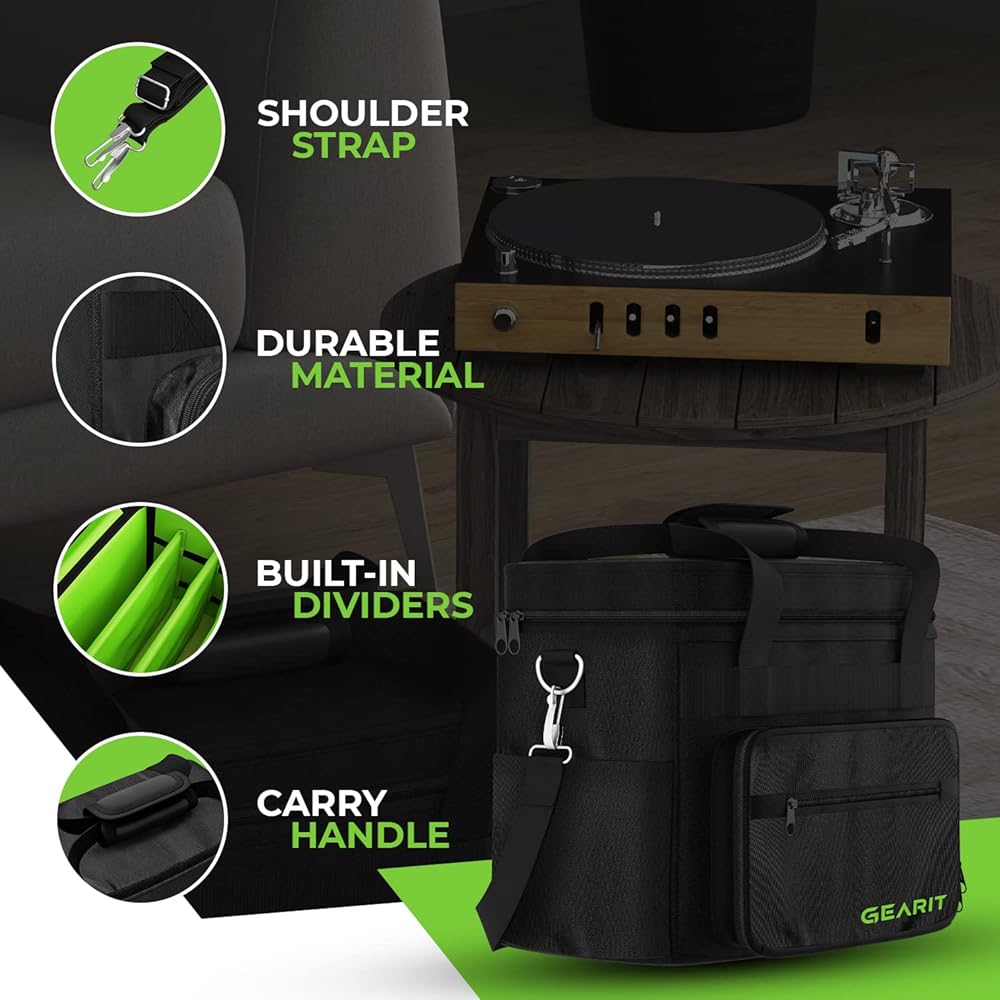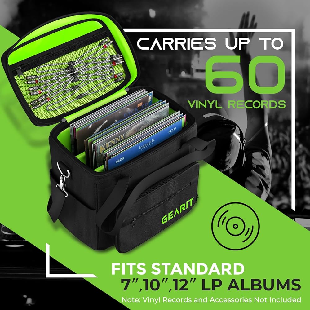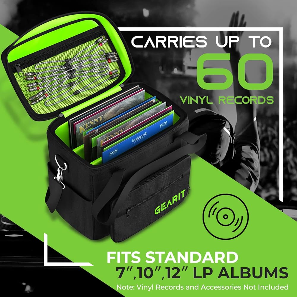 • حقيبة حمل تسجيلات الفينيل من GearIt لألبومات LP مقاس 7 بوصة و10 بوصة و12 بوصة وحقيبة تخزين بسعة 60 - تحتوي هذه الحقيبة الناعمة على ما يصل إلى 60 سجل فينيل مع أكمامها/أغطيةها، حتى تتمكن من نقل مجموعتك بأمان في أي مكان، سواء كان ذلك لحفلة DJ التالية أو لمبادلة التسجيلات المحلية.
