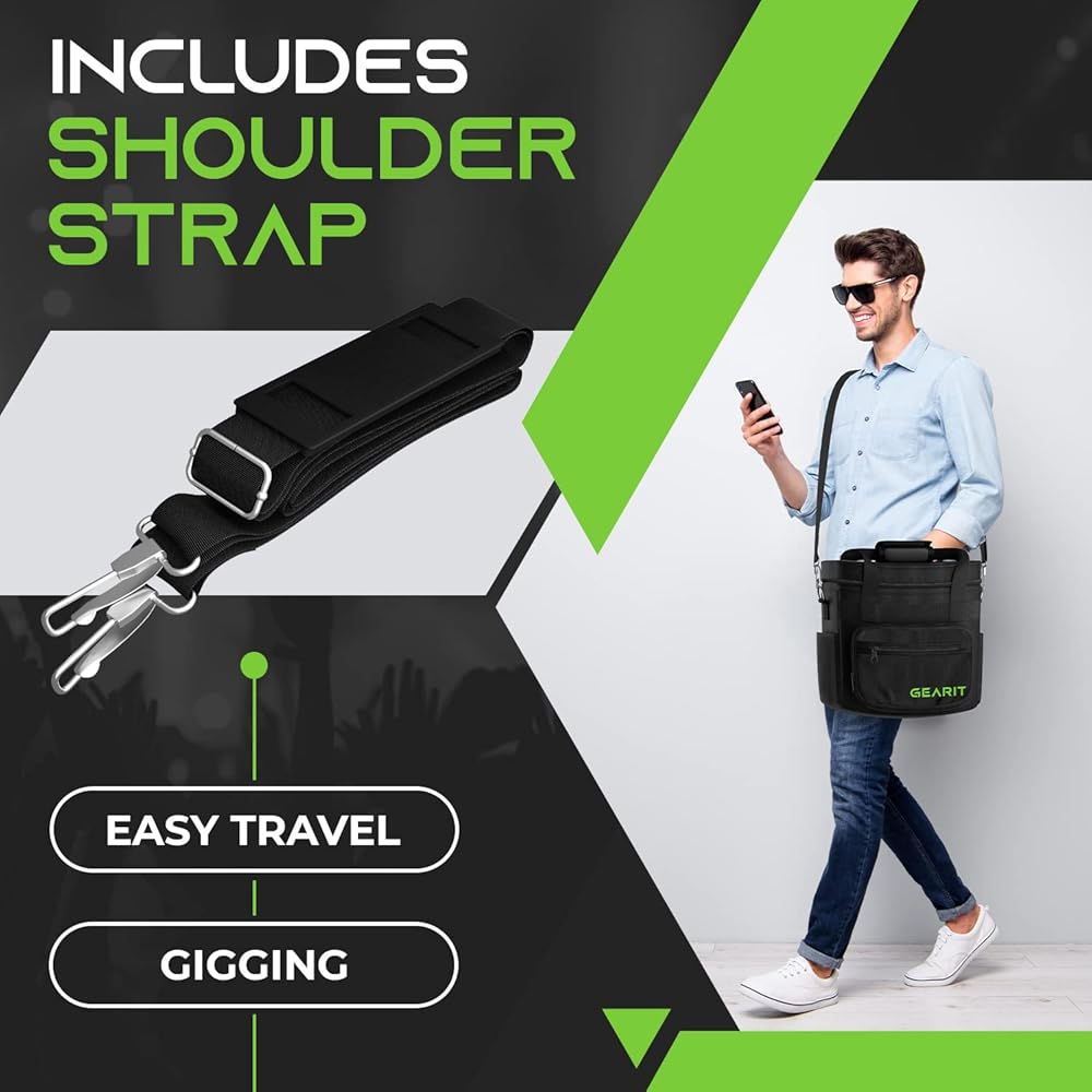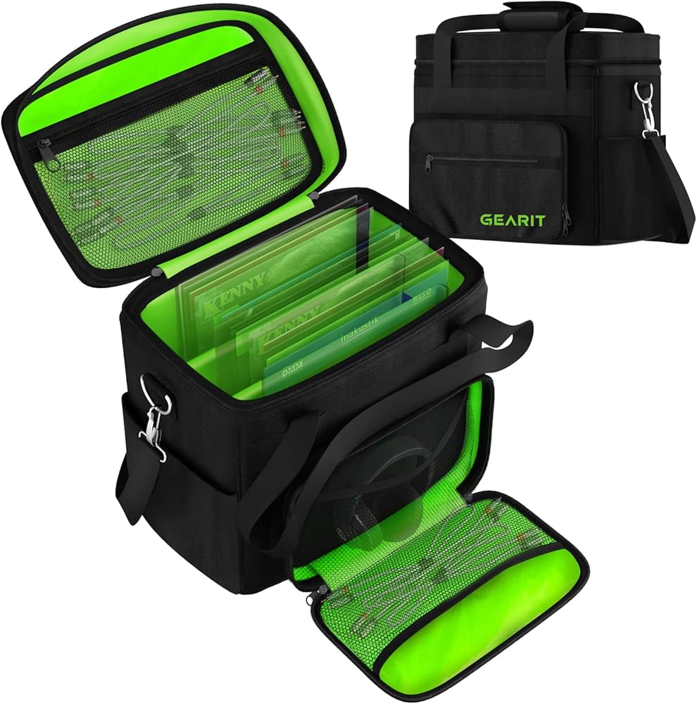 حقيبة حمل تسجيلات الفينيل من GearIT لألبومات LP مقاس 12 بوصة. تناسب 60 سجلًا لموسيقى DJ وتخزين الفينيل، وجيوب بسحاب وشبكية، وتتضمن حزام كتف