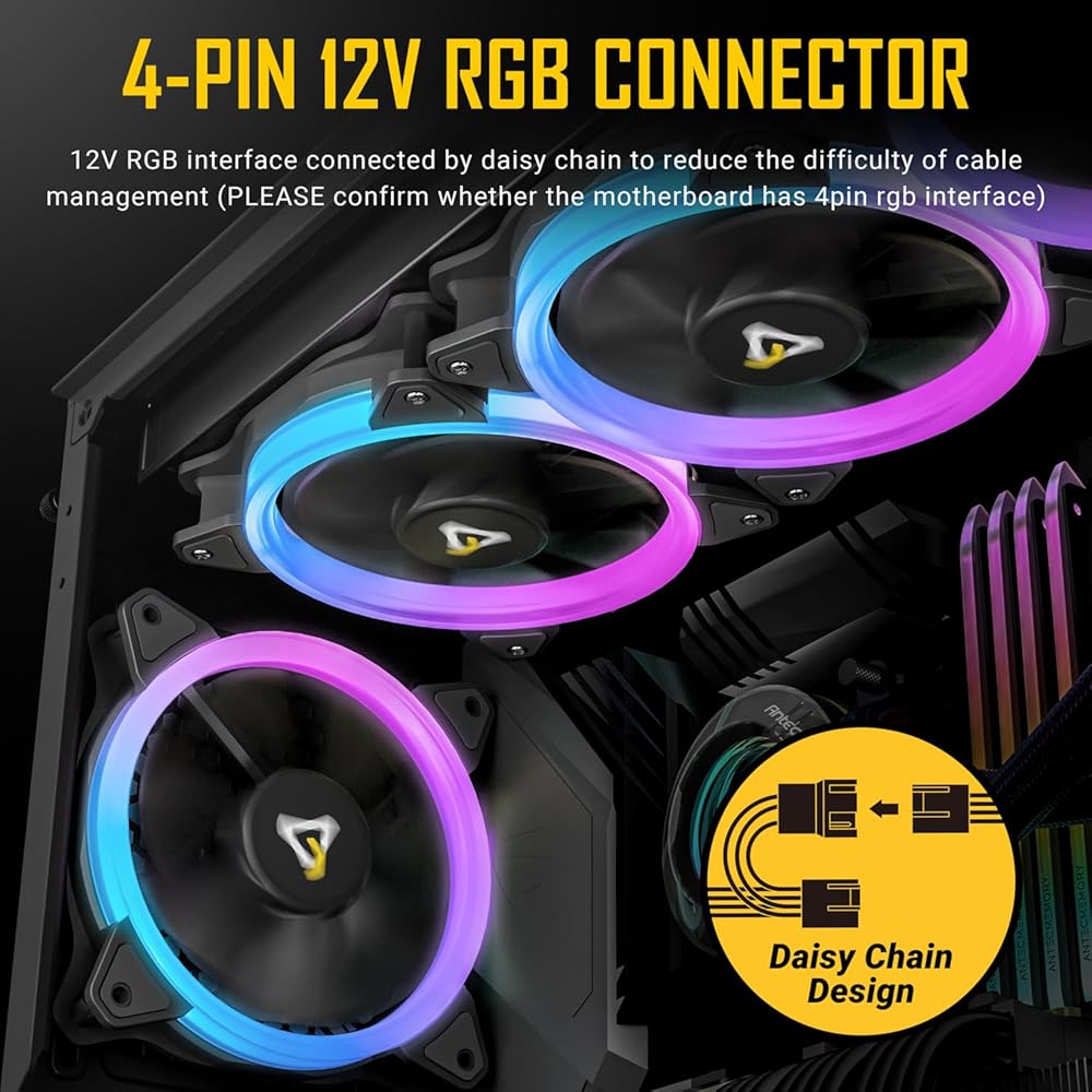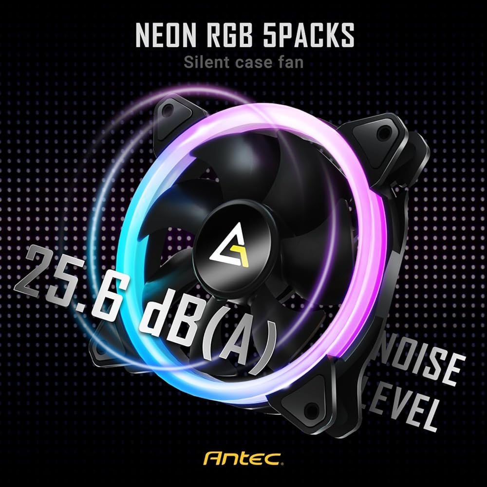 مراوح Antec RGB مقاس 120 مم، مراوح PWM للكمبيوتر الشخصي، مراوح RGB مقاس 120 مم، 5 مجموعات من مراوح علبة 120 مم، مراوح حالة الكمبيوتر، مراوح حالة الكمبيوتر الشخصي، مراوح RGB ذات 4 سنون لحالة الكمبيوتر الشخصي، مراوح RGB سلسلة نيون 5 حزم