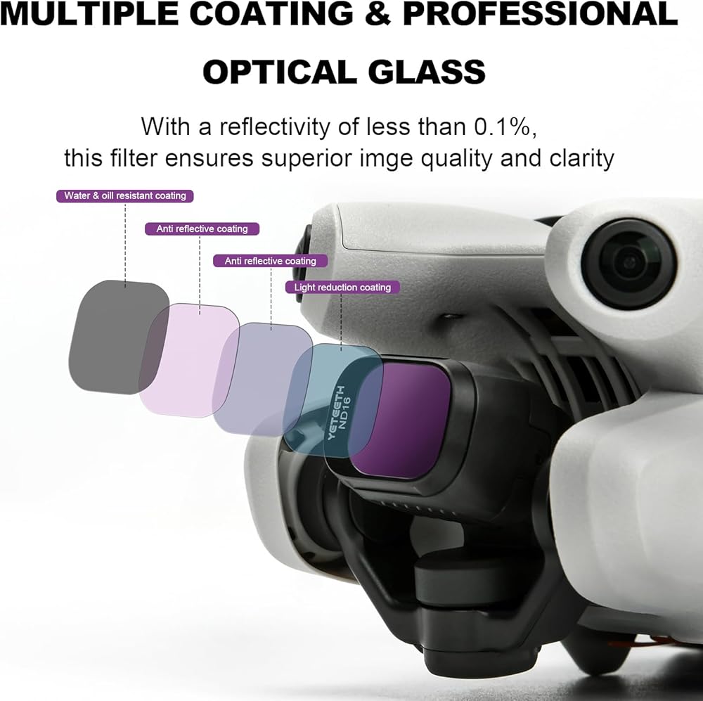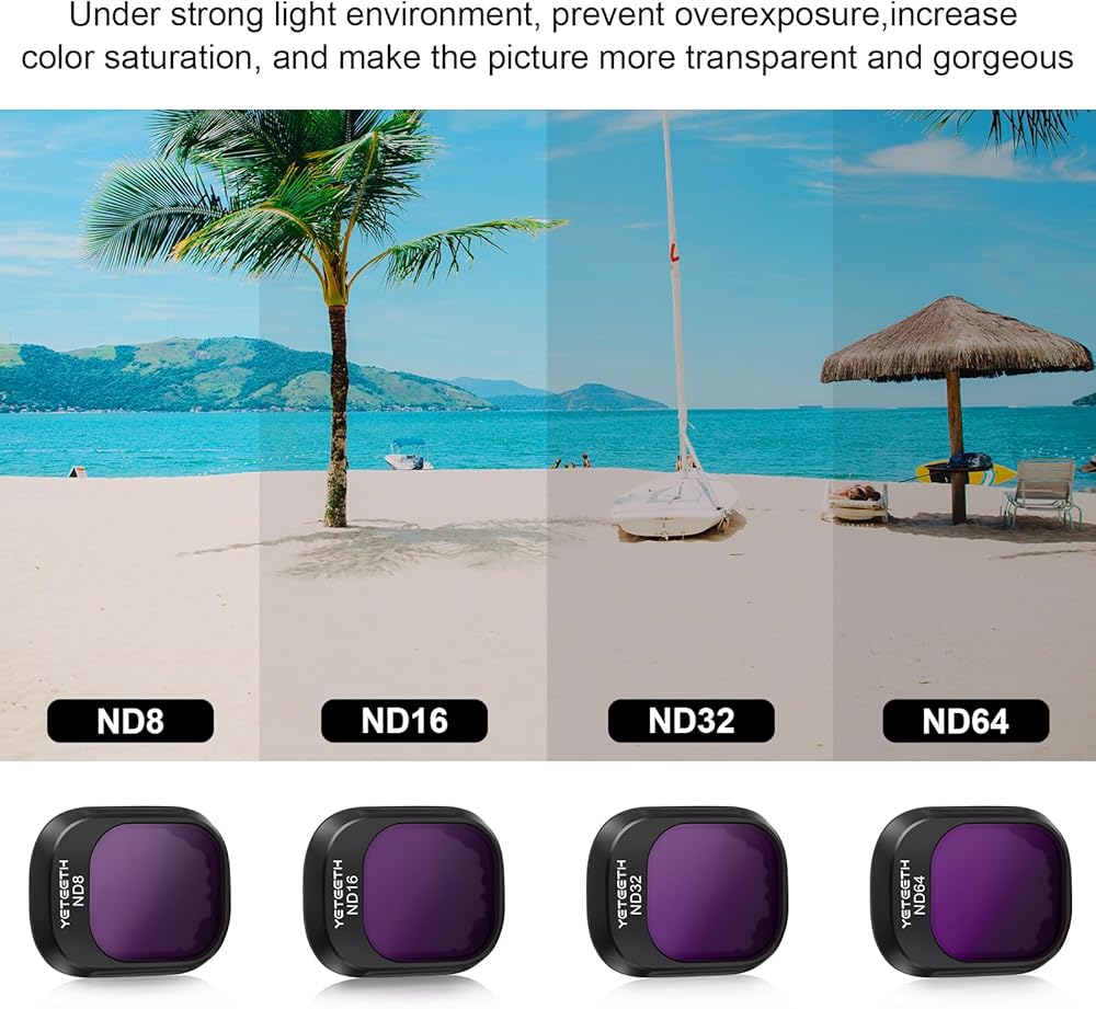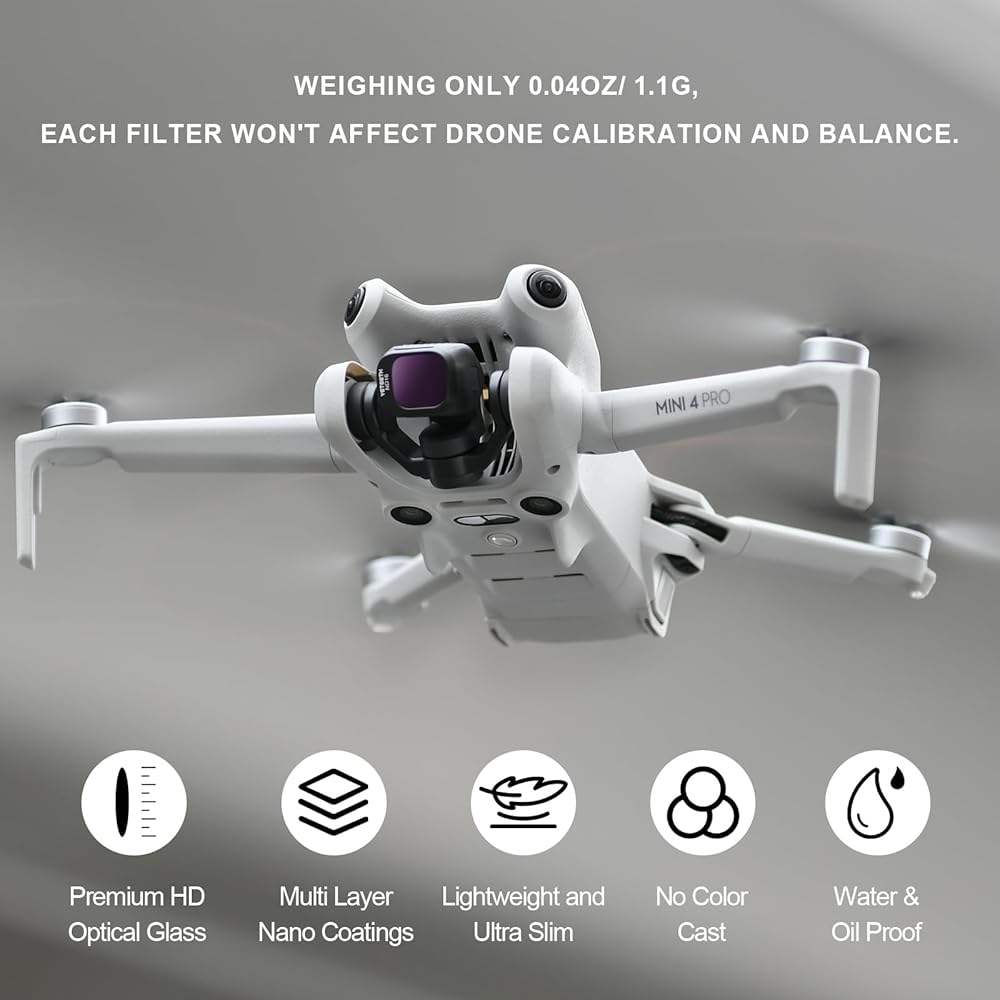 【فلتر Mini 4 Pro 】مصمم خصيصًا لـ DJI Mini 4 Pro. فهو يساعد على تقليل الوهج والانعكاسات، وتعزيز الألوان، وتقليل الضوء القادم إلى العدسة، والمزيد. يخدم كل مرشح عدسة غرضًا محددًا، حيث تم تصميم كل مرشح لتقديم تأثير محدد يمكن أن يساعد في تحسين المظهر النهائي للصورة.