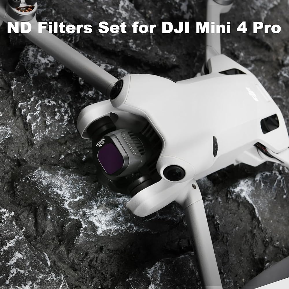 【قائمة العبوات وخدمة ما بعد البيع عالية الجودة】1 × علبة فلتر؛ 1 × 4 عبوات من فلاتر ND8، ND16، ND32، ND64 لـ DJI Mini 4 Pro. إذا كانت لديك أي أسئلة، فلا تتردد في الاتصال بنا – سنكون سعداء بمساعدتك. (ملاحظة: لا تتضمن الطائرة بدون طيار Mini 4 Pro وغيرها من الملحقات!)